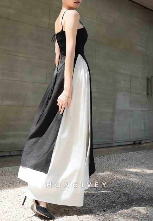 Spaghetti Straps Sleeveless Simple black and white Floor-Length Evening Gowns