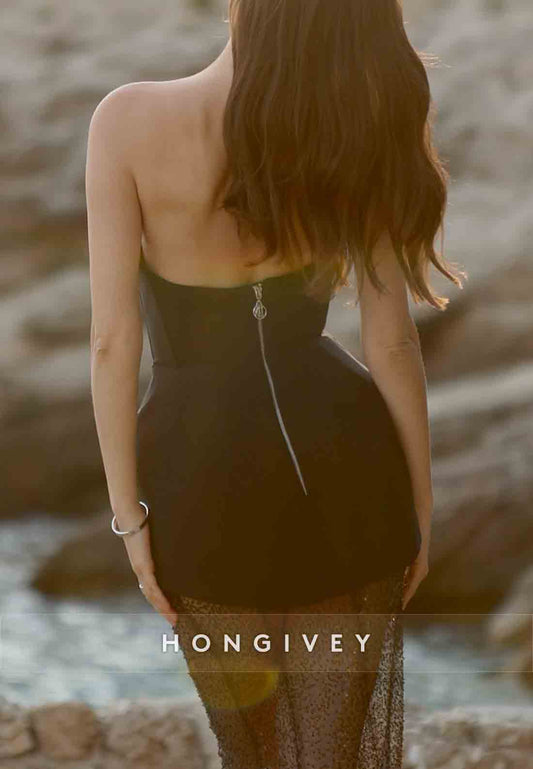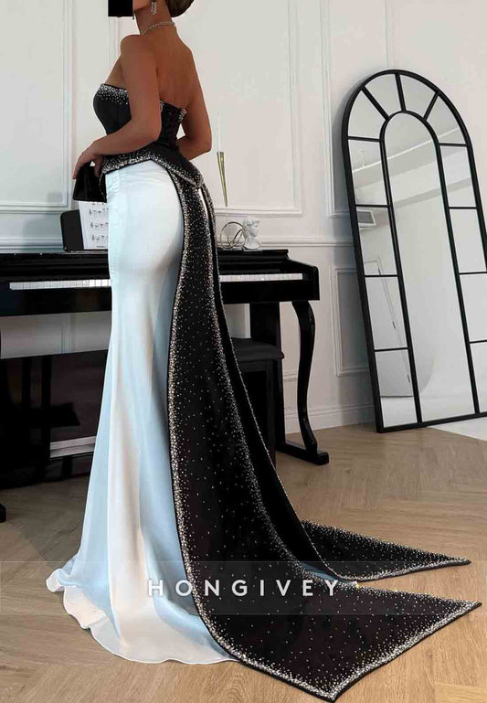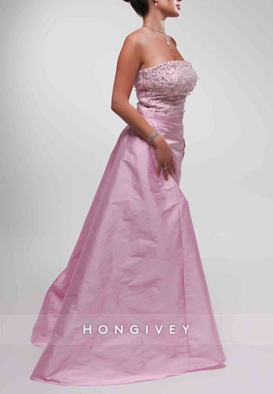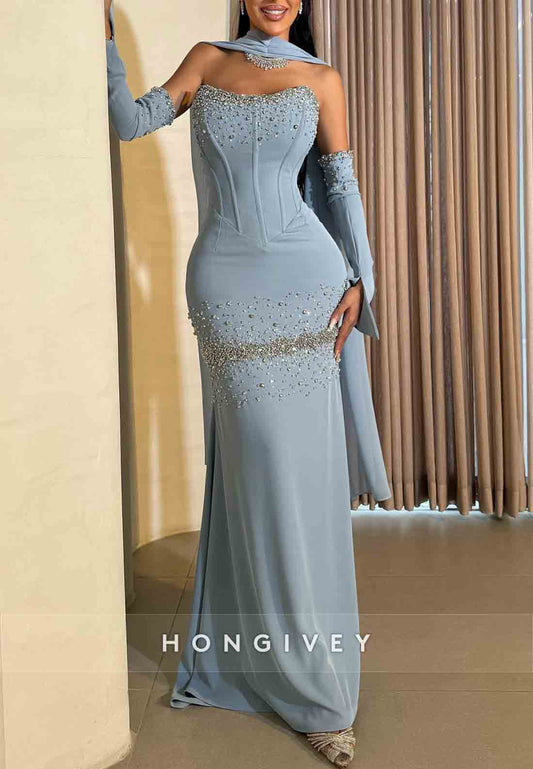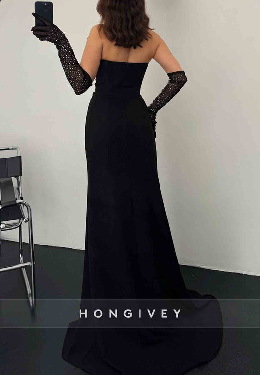 Strapless Beading Trumpet Formal Dresses Side Slit Floor-Length Evening Gowns
