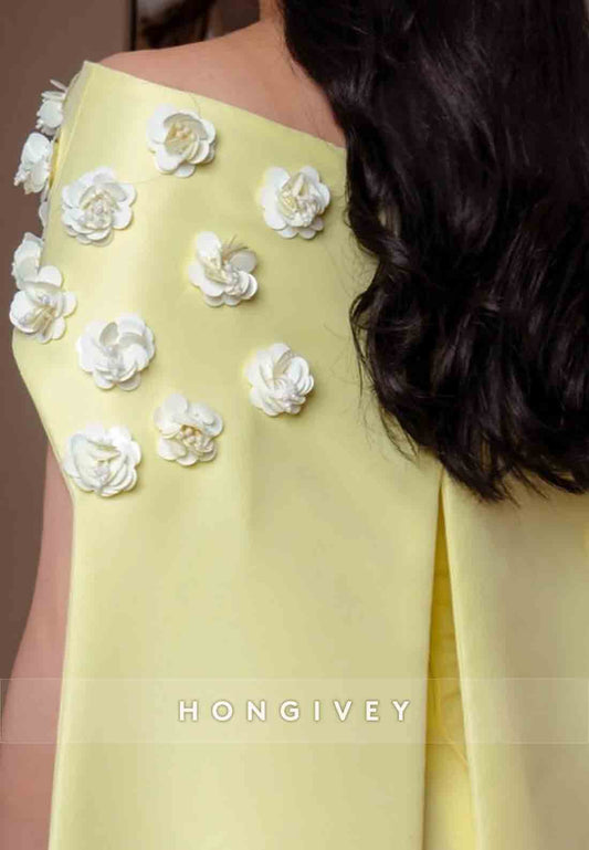 Shawl Pleated Flowers Strapless Ankle-Length With Slit A-Line Evening Gowns