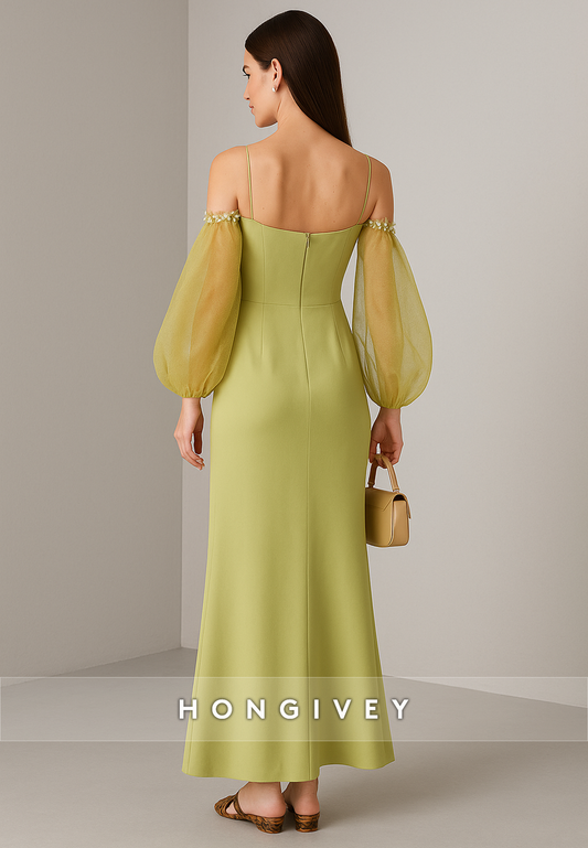 Spaghetti Straps Ankle-Length Evening Gowns Off-Shoulder Flowers A-Line Mother of the Bride Dresses
