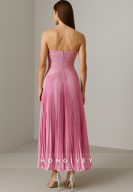 Strapless Pleated Ruched A-Line Sleeveless Ankle-Length Evening Gowns