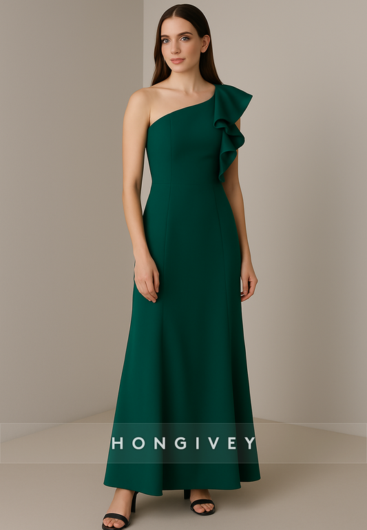 Elegant One Shoulder Pleated Ankle-Length Pleated Evening Gowns