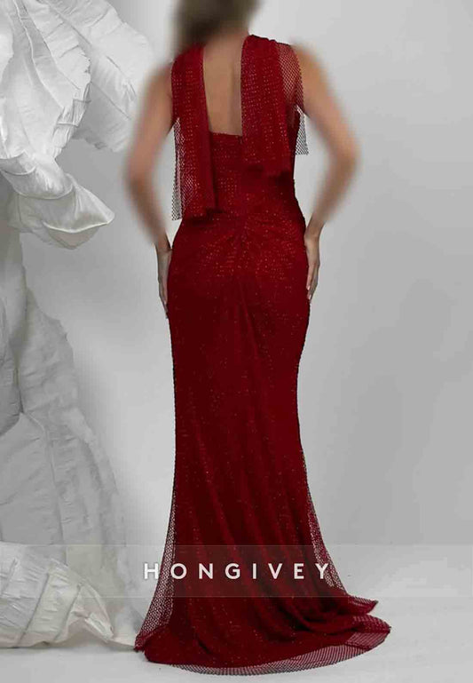 Strapless High Slit Halter Sleeveless Floor-Length Pleated Evening Gowns