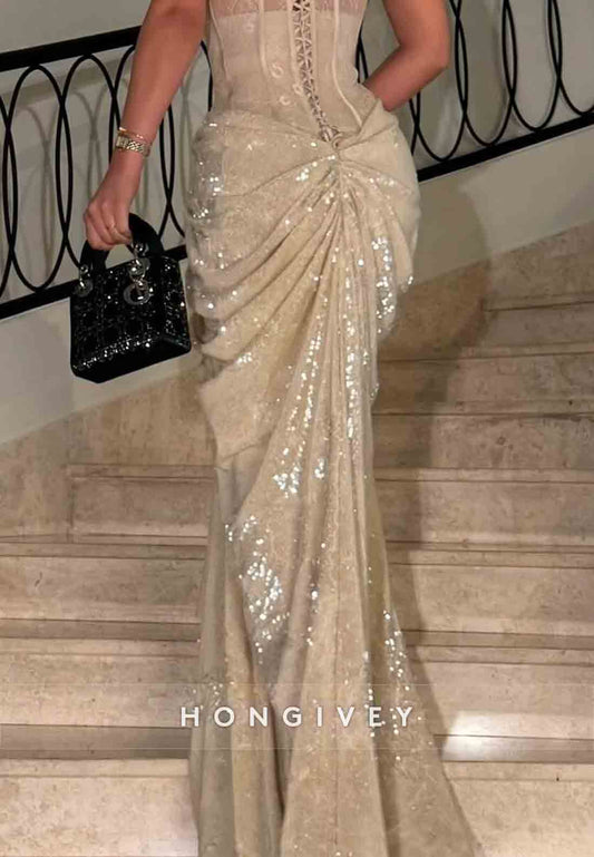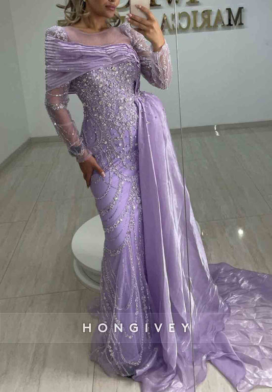 Side Draping Shawl Long Sleeves Beading Floor-Length Mermaid Evening Gowns