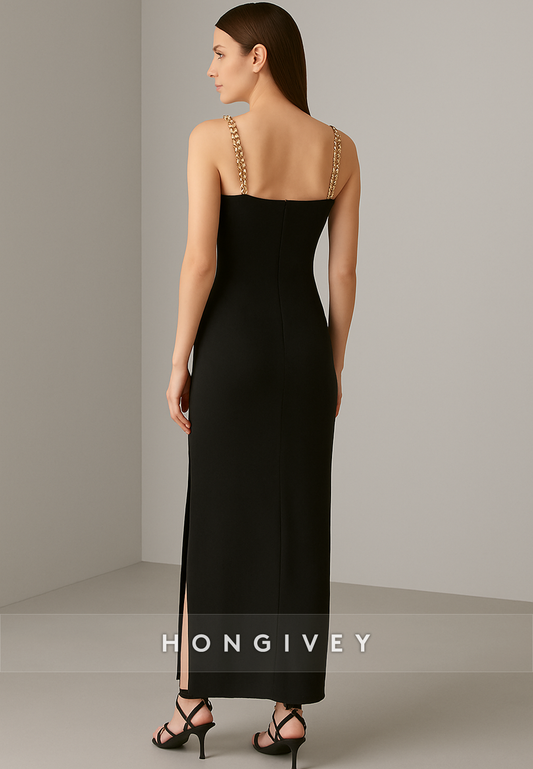 Simple Ankle-Length Regular Straps Sleeveless Column Pleated Evening Gowns