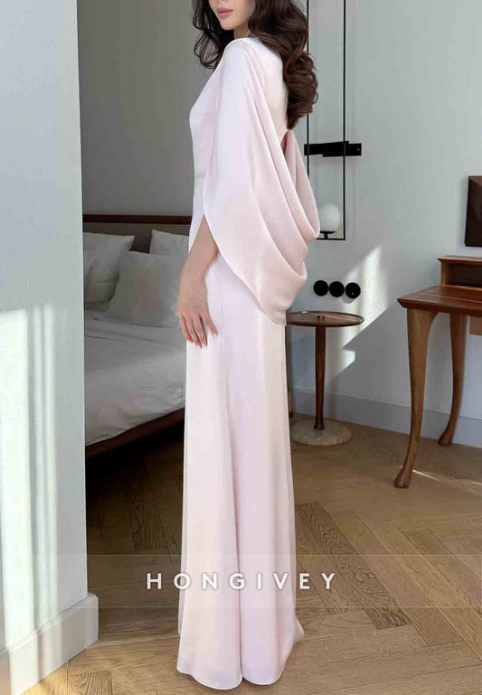 Pale Blush Simple Shawl Floor-Length Satin Pleated Column Evening Gowns