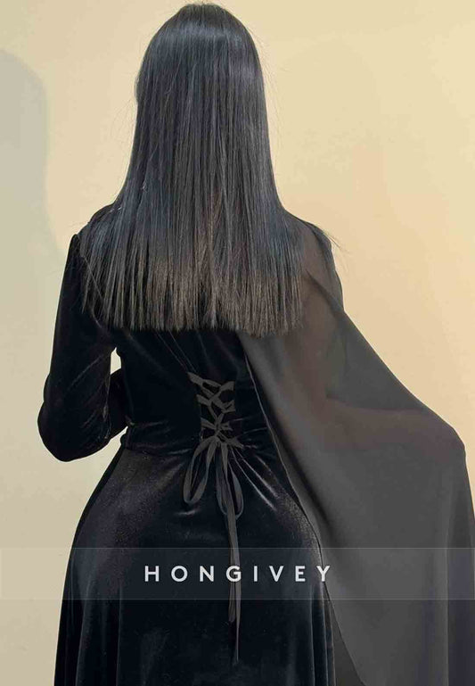 Velvet Side Draping Formal Gowns Floor-Length Pleated A-Line Evening Gowns