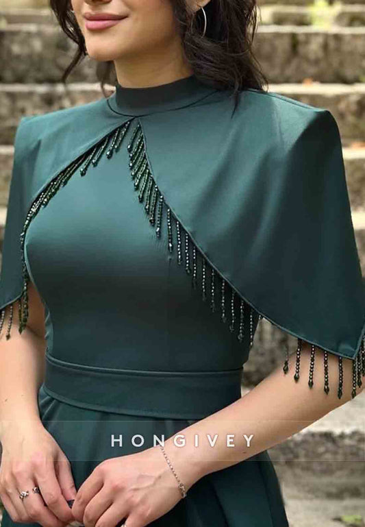 High Neck Shawl Formal Gowns A-Line Pleated Floor-Length Evening Gowns