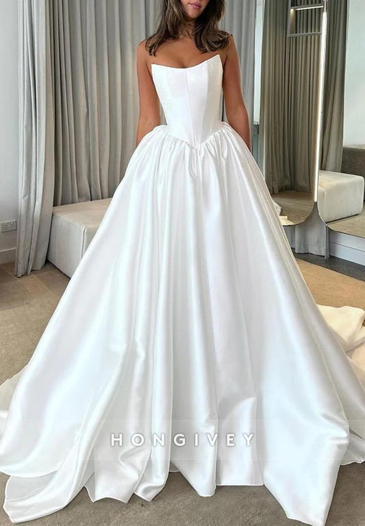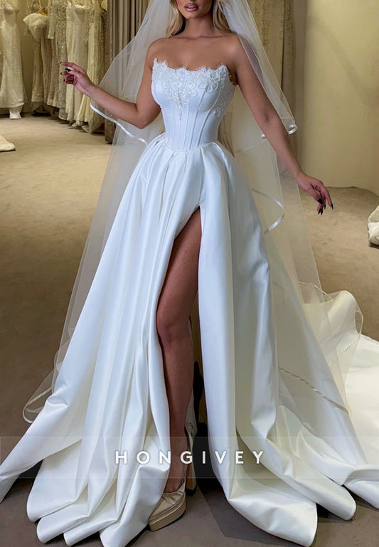 H1752 - Casual Satin Fitted Strapless Empire With Side Slit Wedding Dress