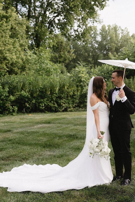 Elegant Mermaid Off the Shoulder Elastic Satin Long Wedding Dresses