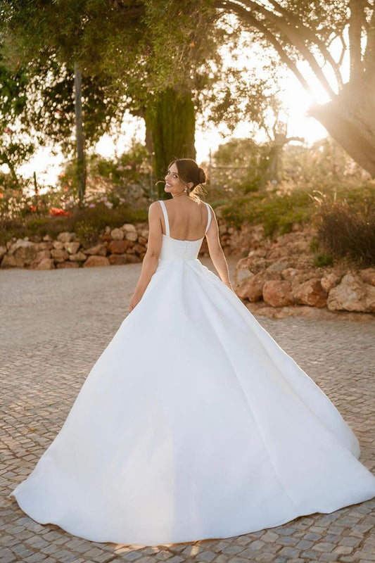 Fashion A Line Square Neck Satin Long Wedding Dresses