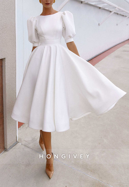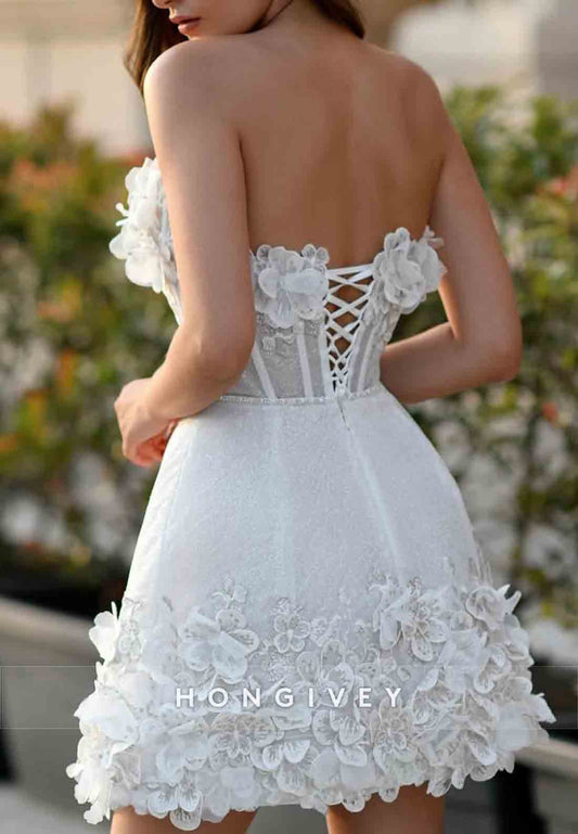 Tea-Length Off the Shoulder Floral Special Design Lace Wedding Engagement Dress