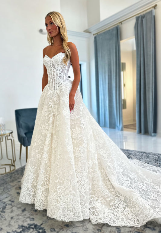 Elegant Lace Sweetheart Sleeveless A-Line Floor-Length Wedding Dress