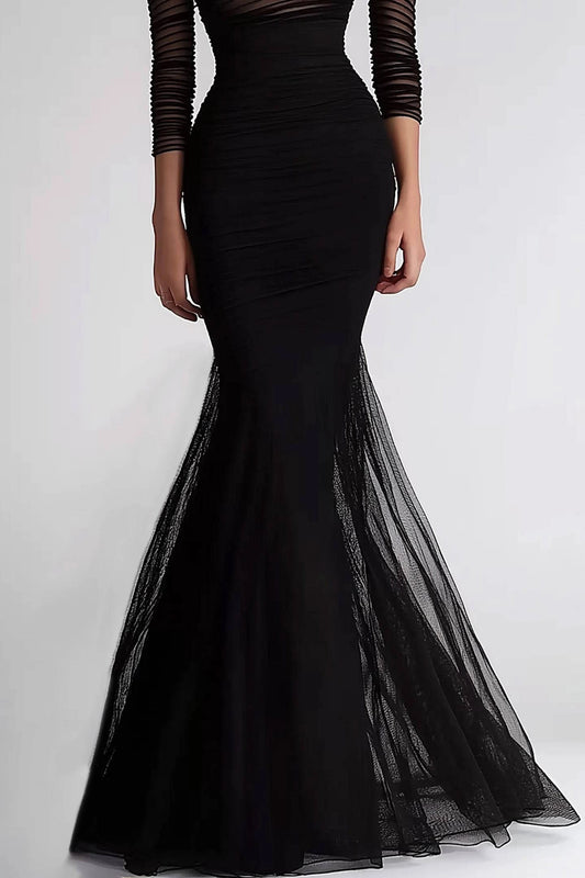 Formal Evening Dress Black Mesh Pleated Off-Shoulder Mermaid Dress