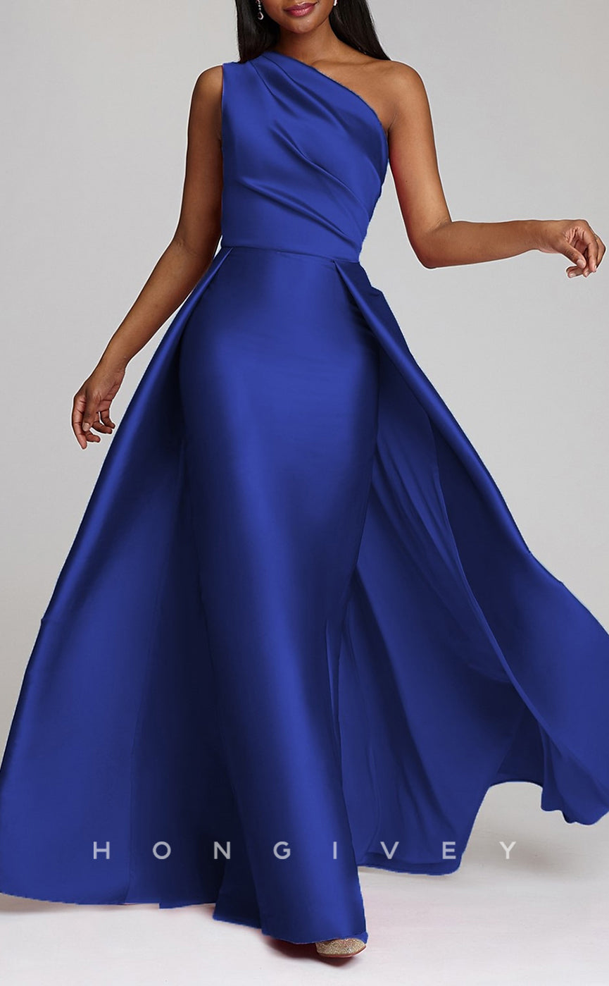 HM219 - Satin Fitted One Shoulder With Train Mother of the Bride Dress
