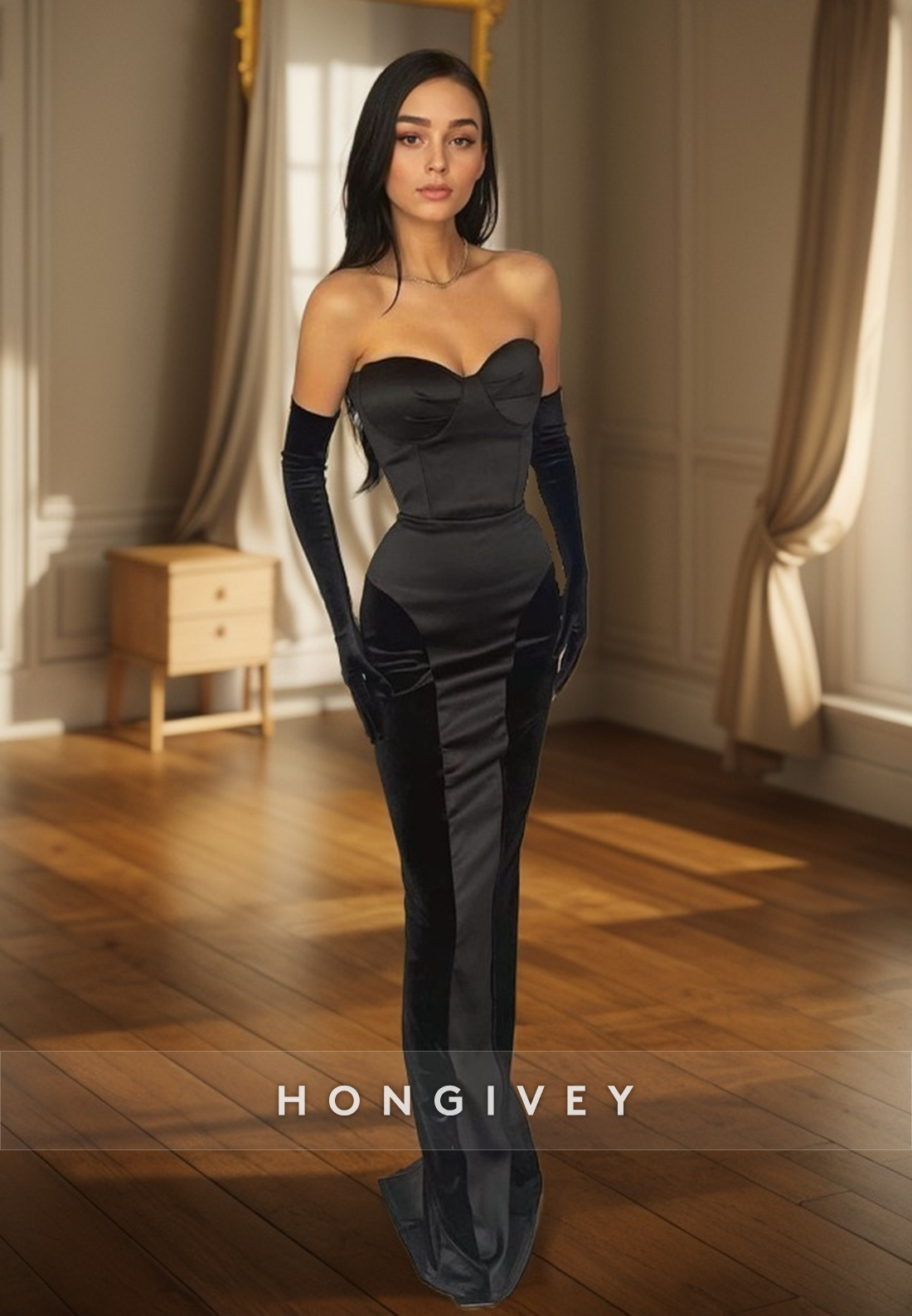 Two Tone Strapless Sweetheart Velvet Fitted Dress