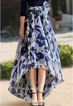 A-line V Neck Pleated Asymmetrical Flower Floral Print 3/4 Sleeve Mother of the Bride