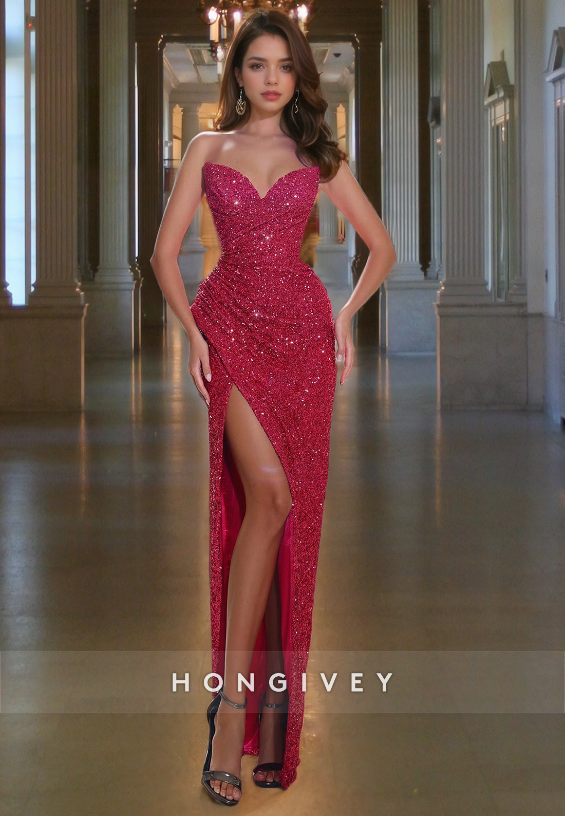 Sparkle Sequined sexy Red Sweetheart Sheath Strapless Evening Dress