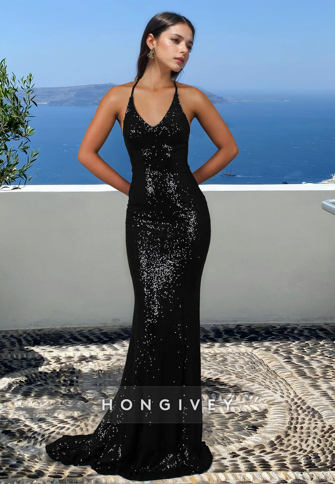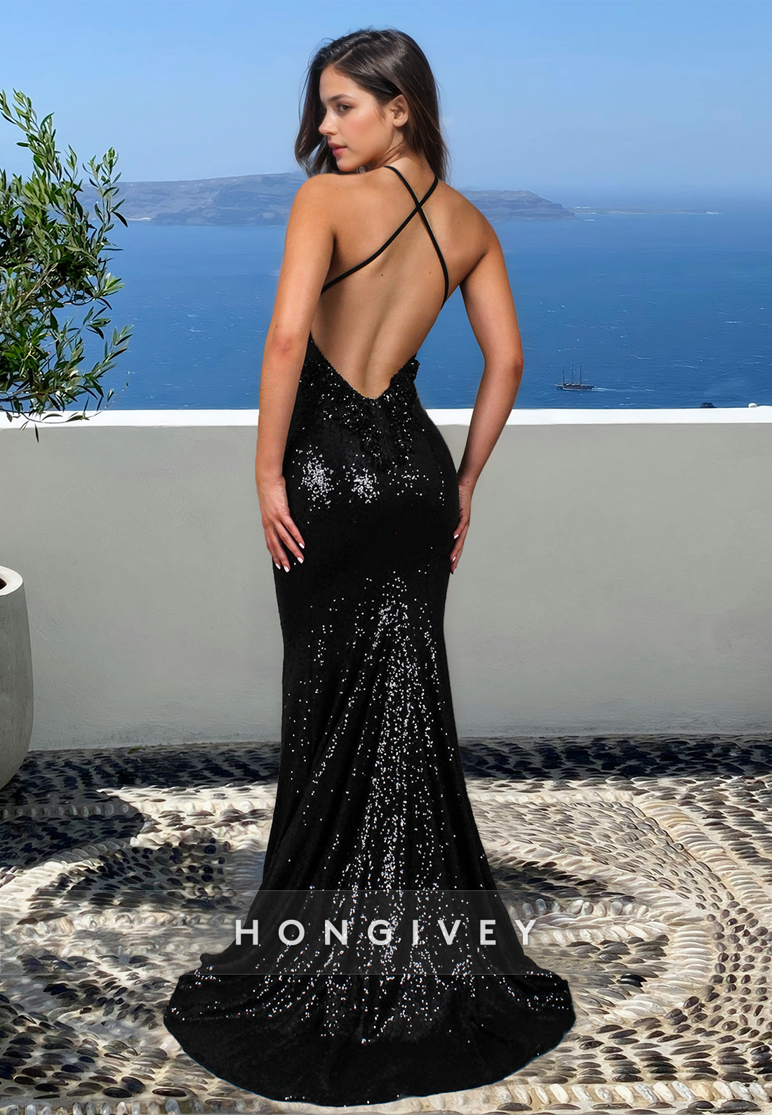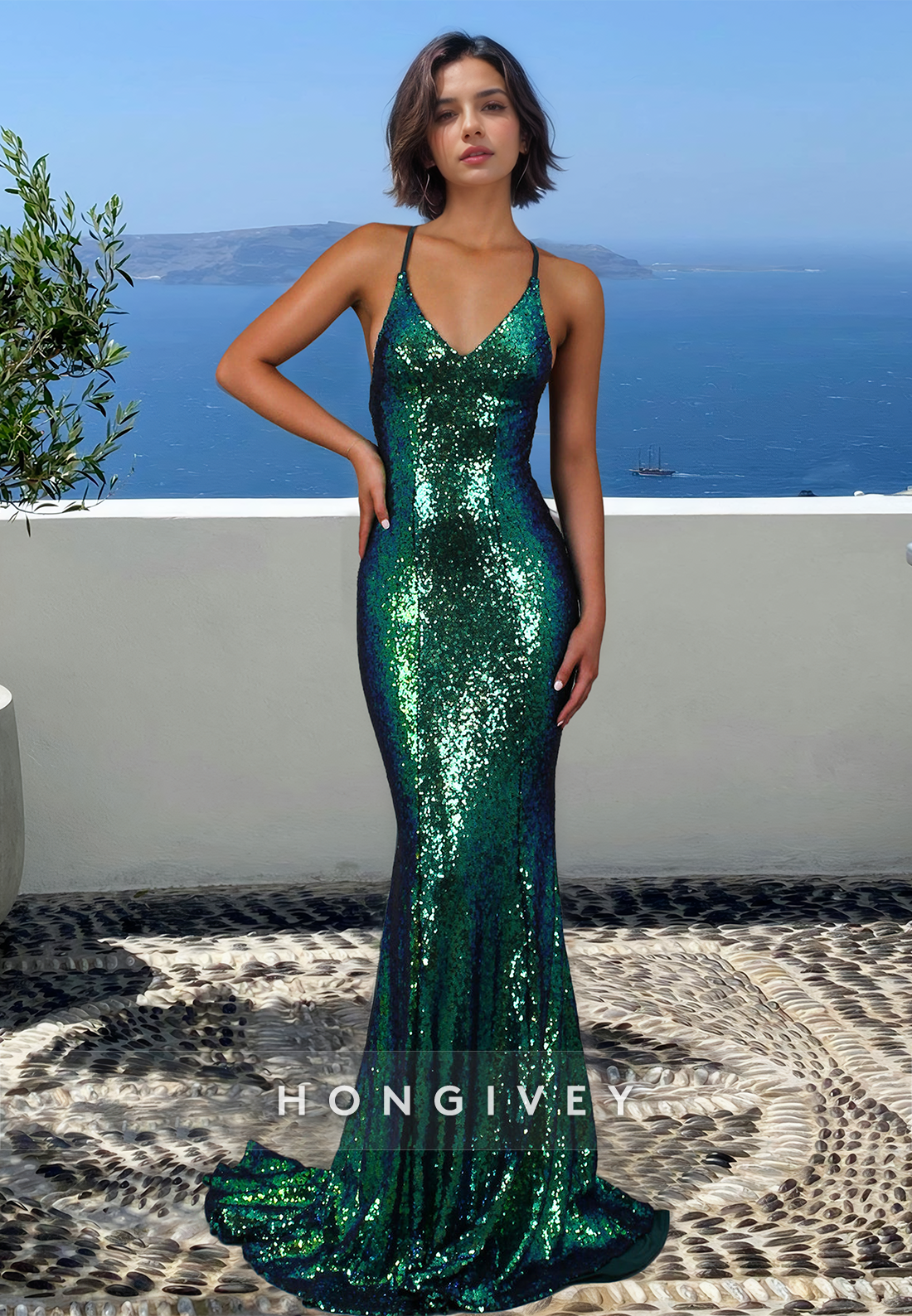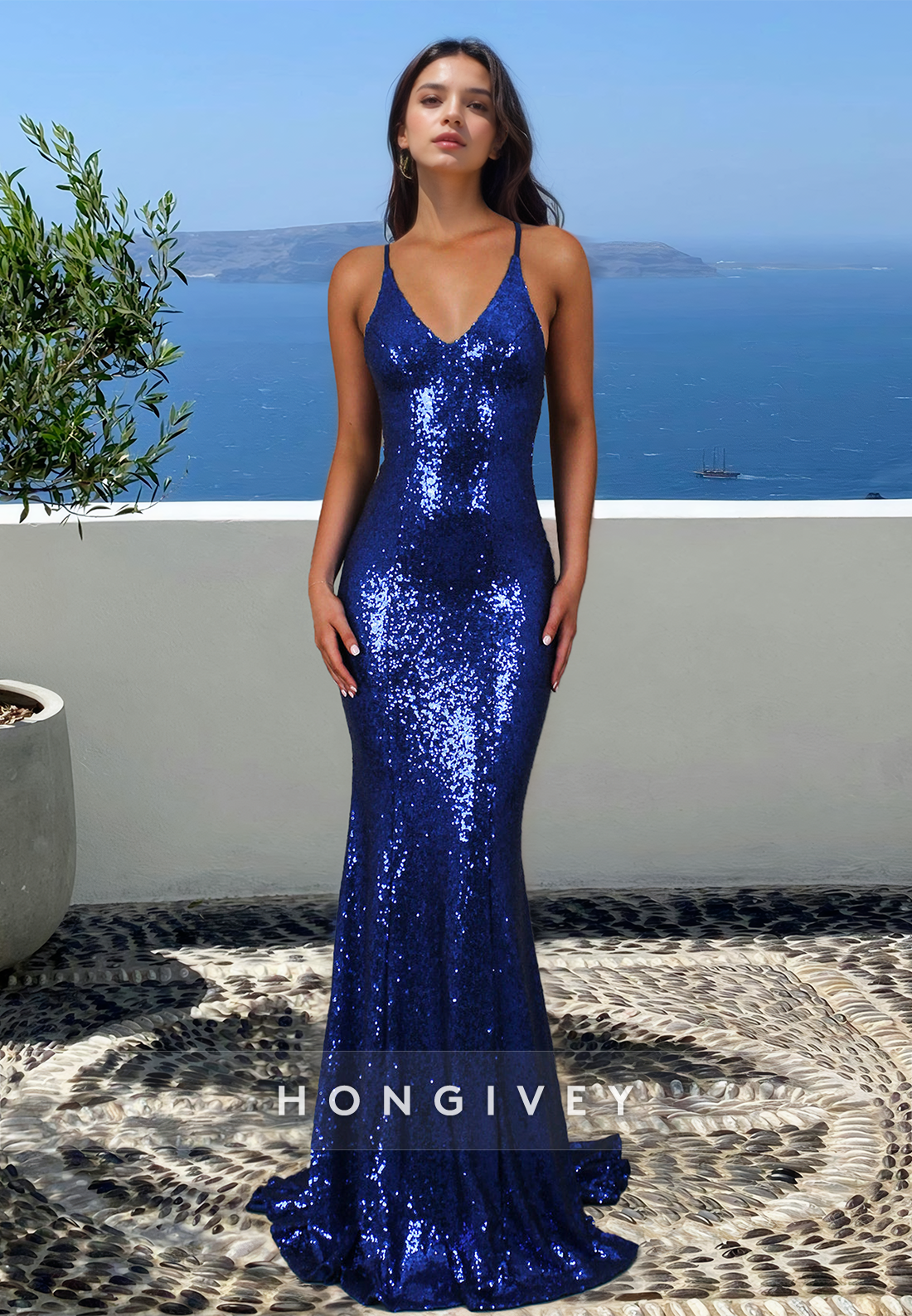 Glitter Sexy Straps Open Back Mermaid Evening Dress Classic Formal Wear