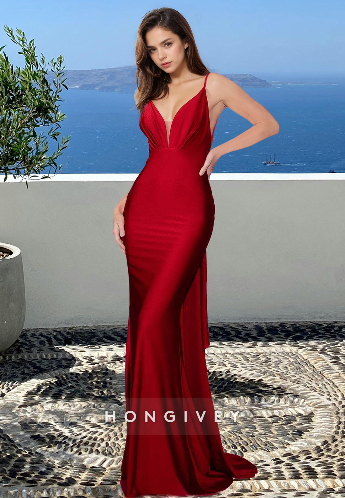 Elevate your style with this Sexy Red V-Neck Backless Satin Classic Long Formal Evening Dress 2025. The flattering v-neckline and backless design exude sophistication while the satin fabric adds a touch of luxury. Perfect for any formal event or evening occasion, this dress will make you feel confident and elegant.