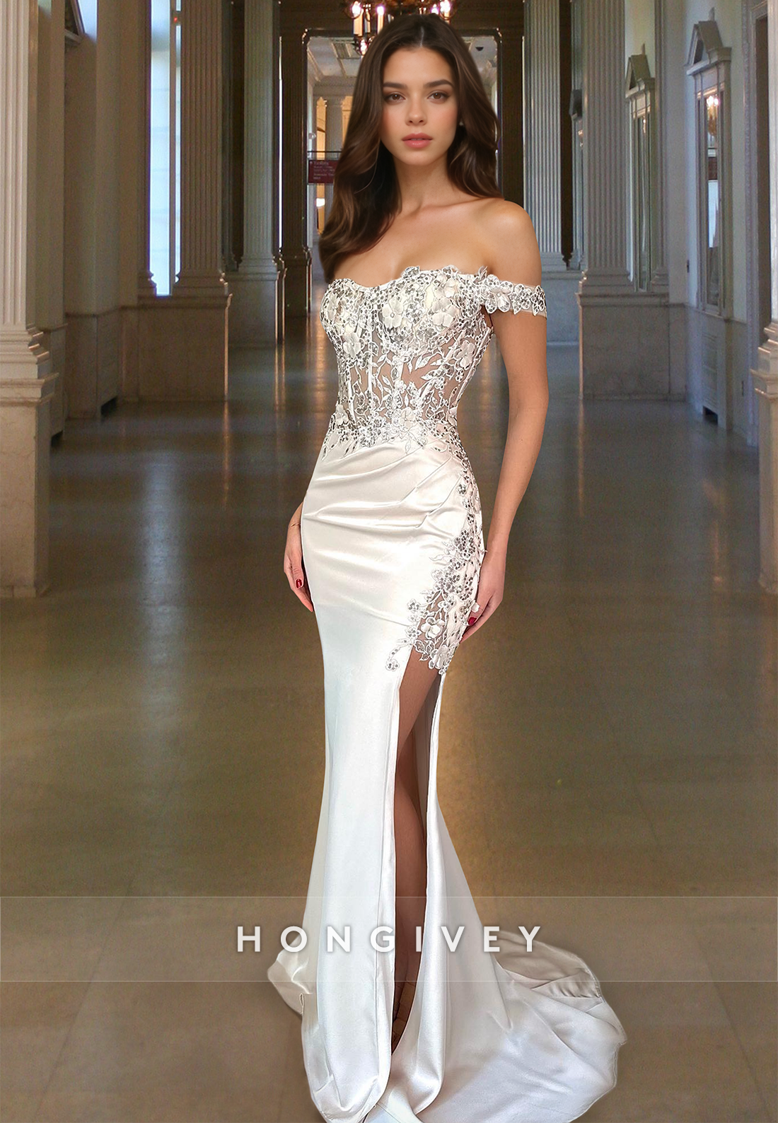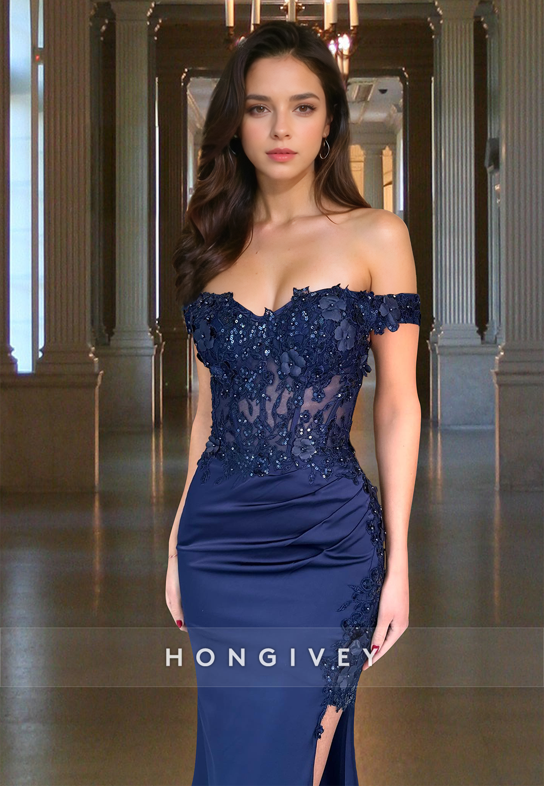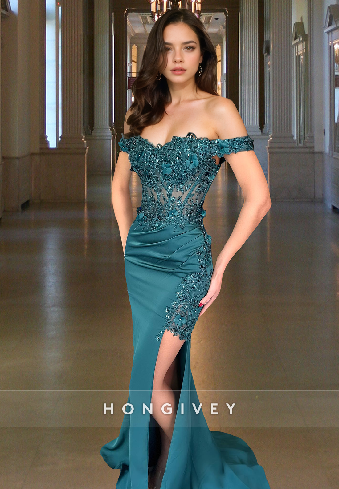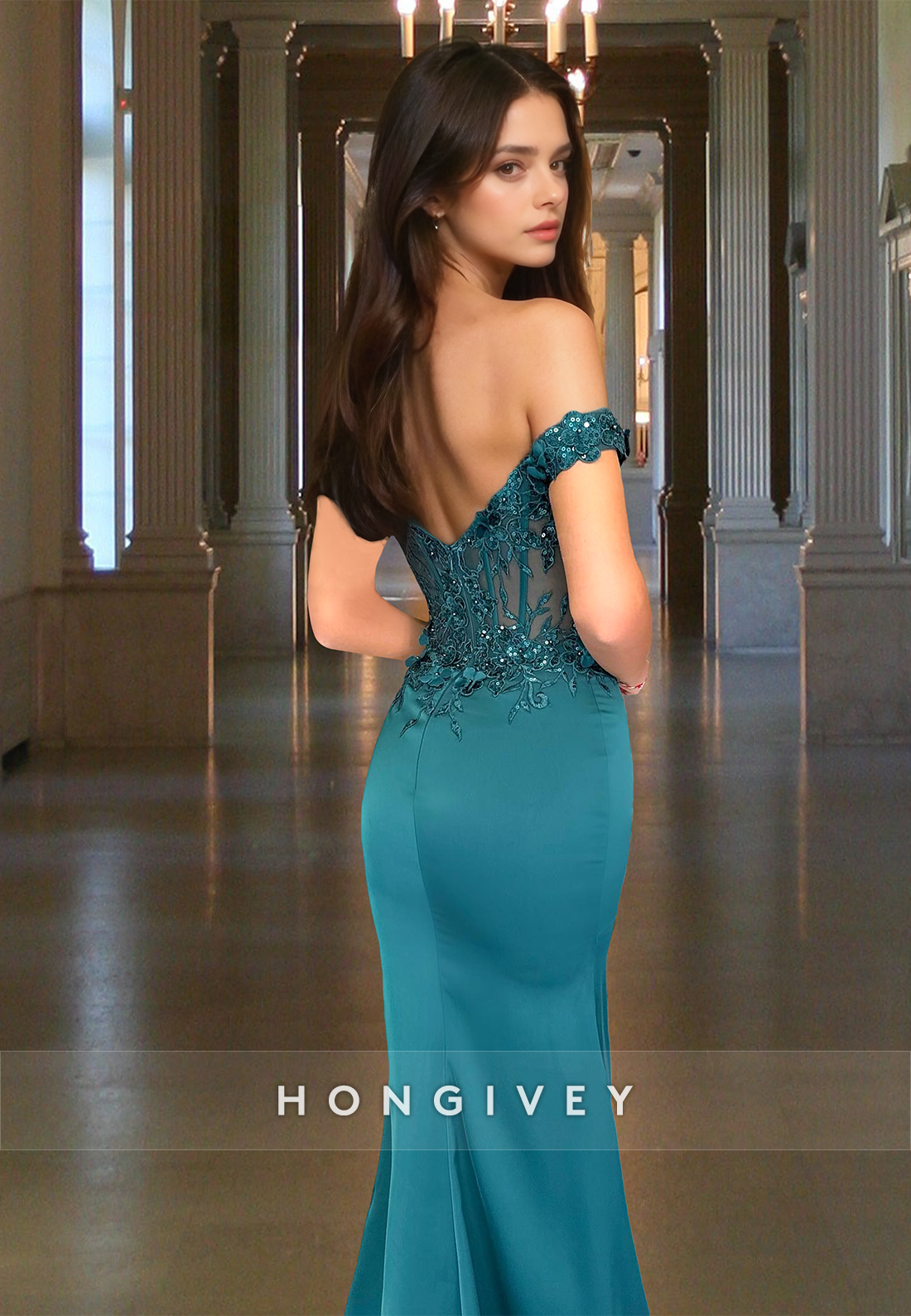 Floral Off-Shoulder Sheer Sexy Trumpet Evening Dress Formal Gown 2025