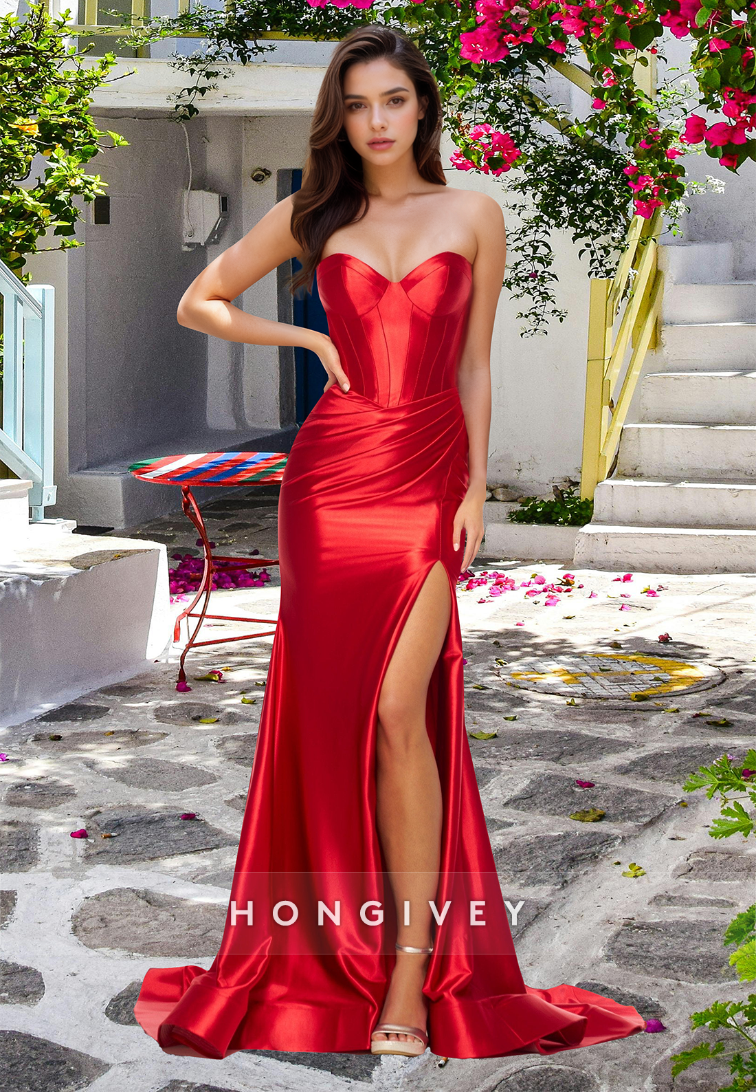Classic Sweetheart Strapless Empire with Slit Sheath Formal Evening Dress