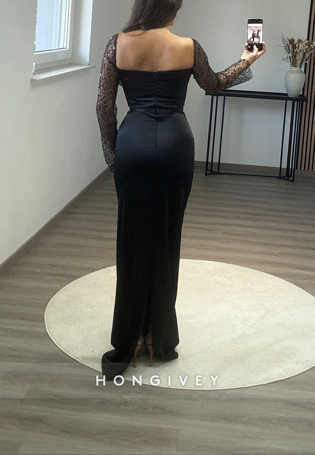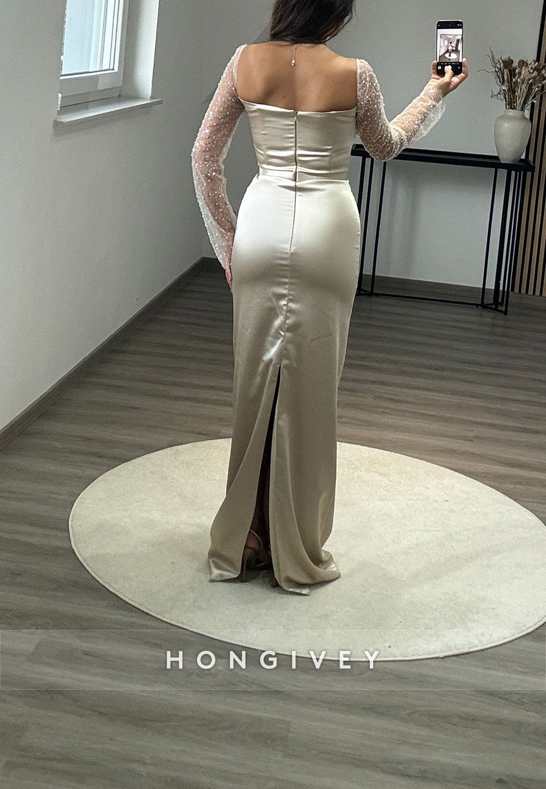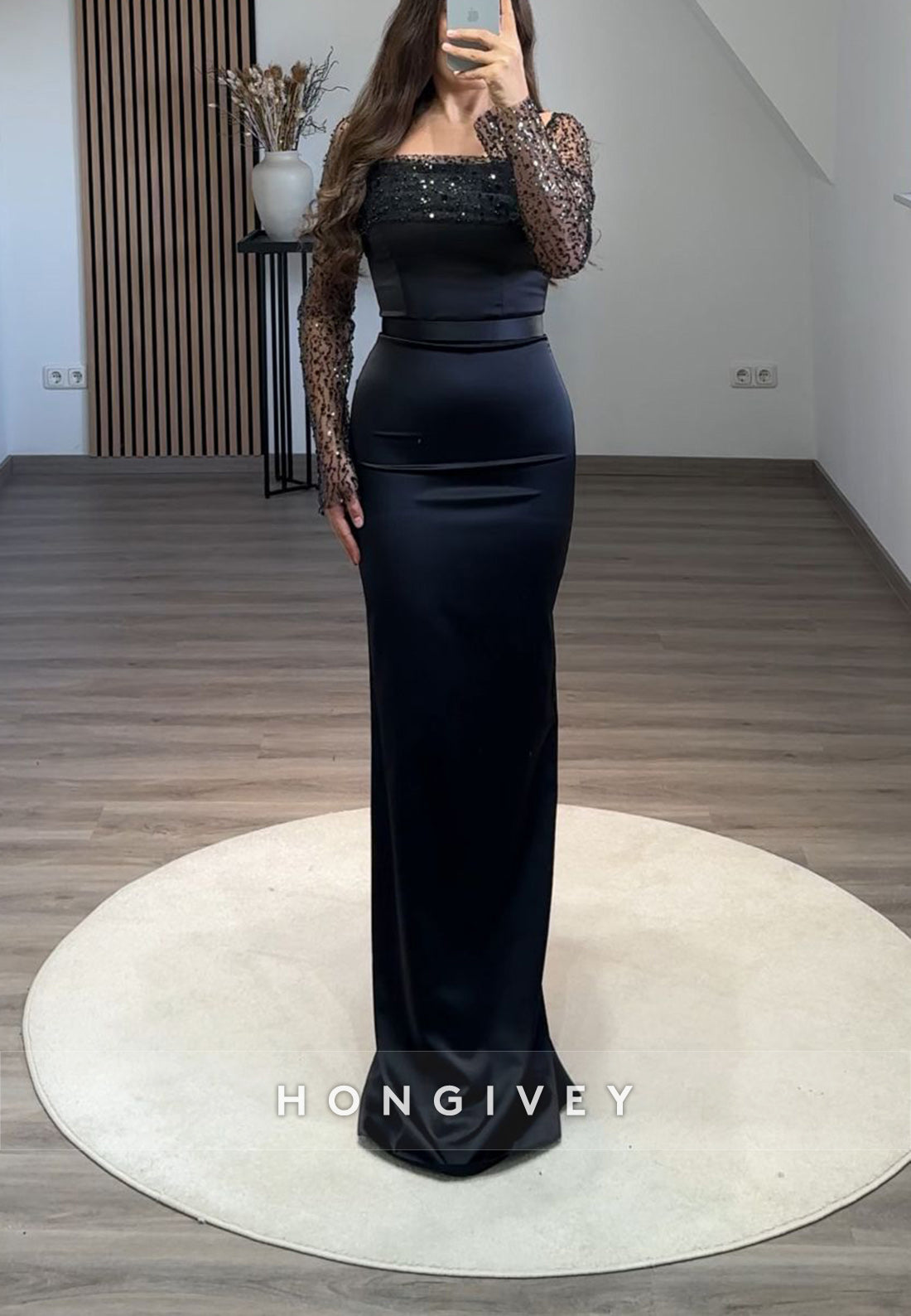 This Formal Long Sleeve Sheath Floor-Length Square Appliqued Pleated Evening Gown is a must-have for any formal event. The long sleeves and floor-length design provide elegant coverage, while the square neckline and appliqued details add a touch of sophistication. The pleated skirt offers a flattering silhouette, making you stand out in any crowd. Perfect for a timeless and chic look.