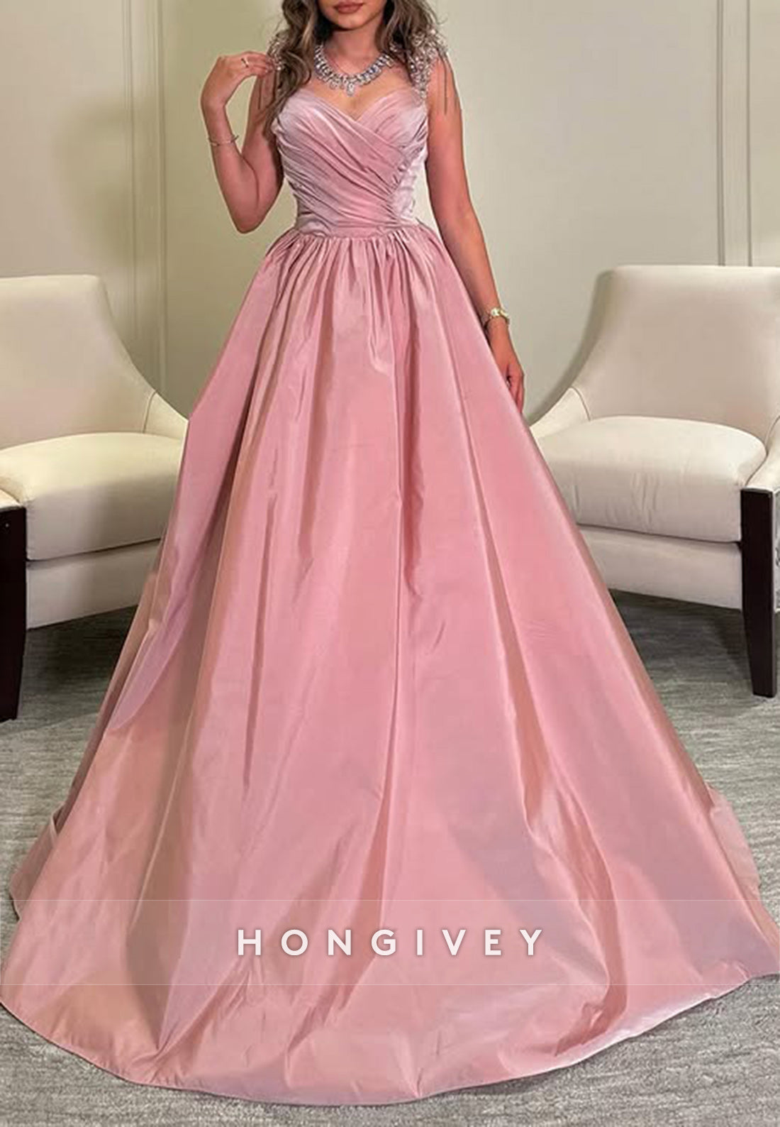 Princess Court Train Sweetheart Sleeveless Pleated Evening Gown