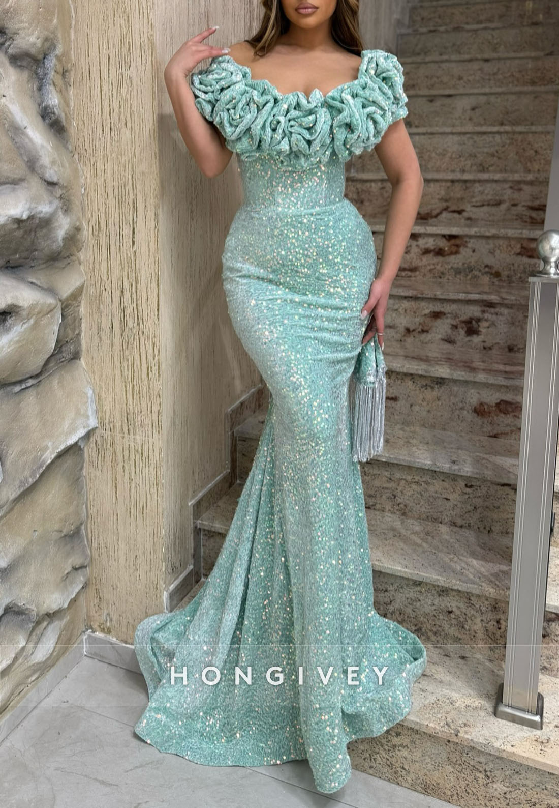 Make a statement in this elegant Formal Dresses Floor-Length Sequined Pleated Mermaid Evening Gown. With its luxurious sequined detailing and graceful pleats, this dress exudes sophistication and allure. Perfect for a special evening event, it will make you feel like a true fashion icon. Elevate your style and turn heads with this stunning piece.