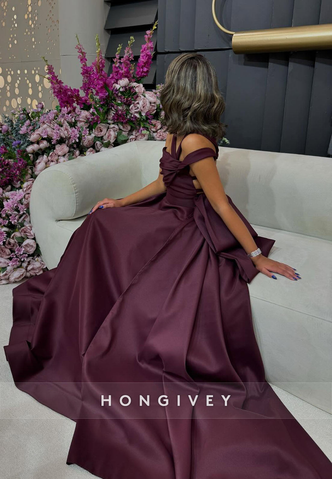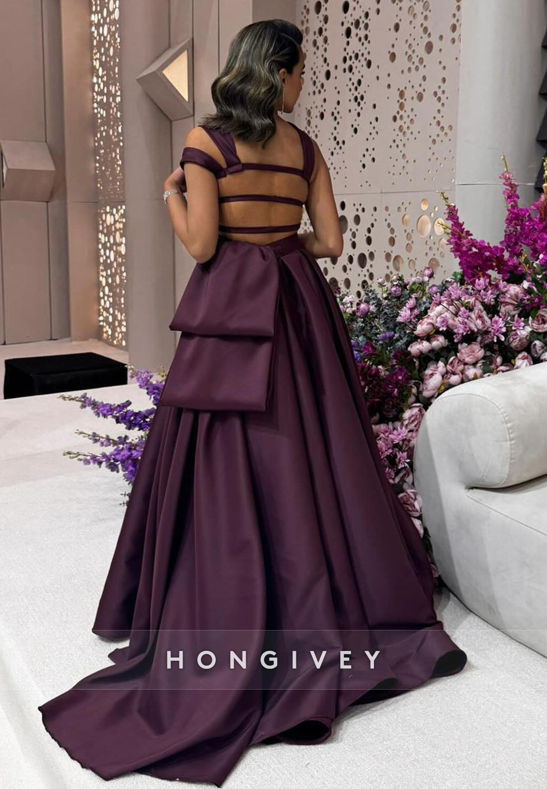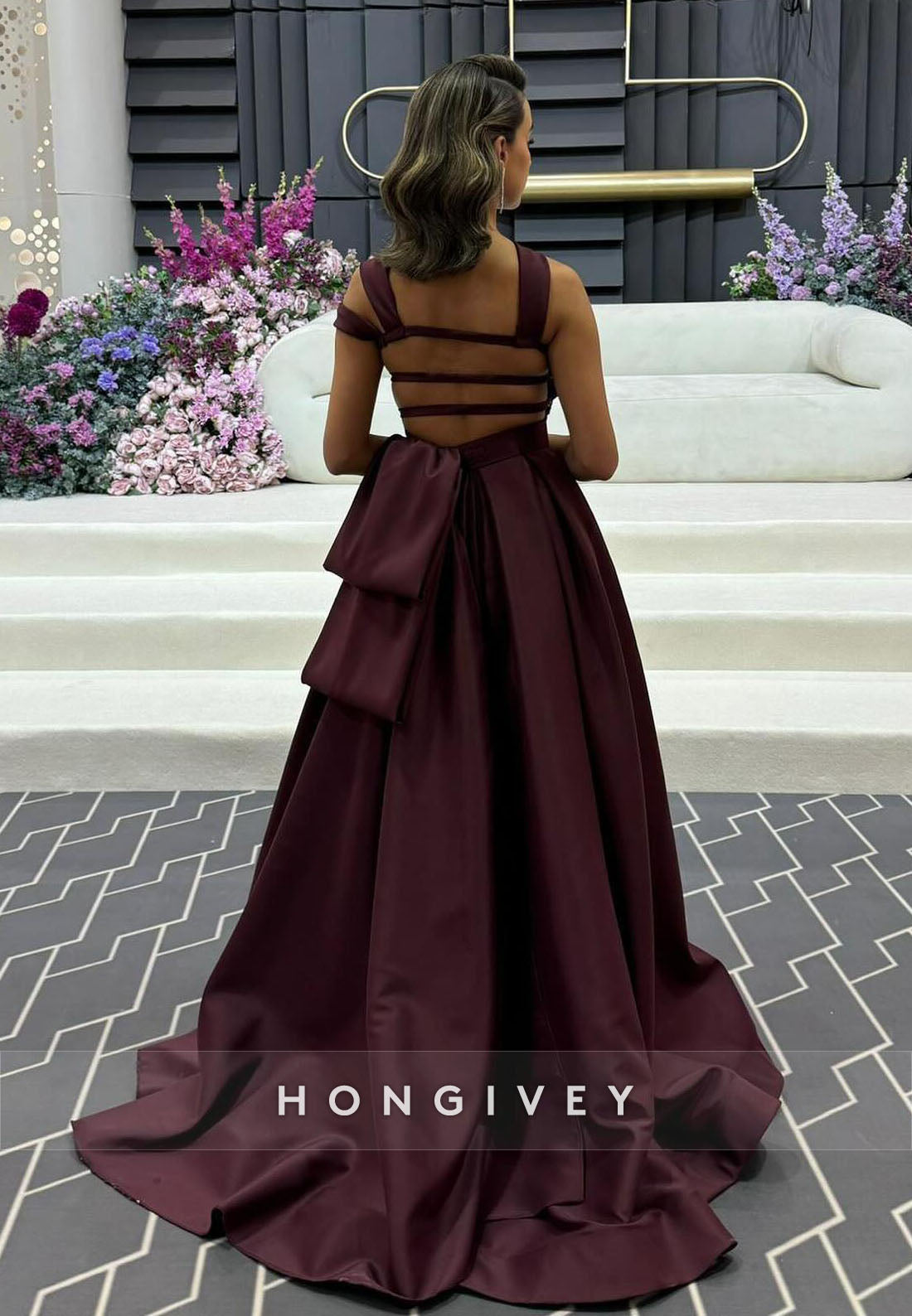 Court Train Asymmetrical Neck Evening Gown Pleated Ladder Back Formal Dresses