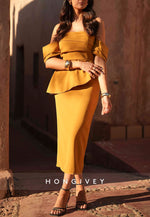 Indulge in luxury and elegance with our Off the Shoulder Sheath Mother of the Bride Dress. Featuring a tea-length pleated evening gown, this dress is perfect for any special event. With its off the shoulder design, it exudes sophistication and grace. Make a statement and stand out with this exclusive piece.