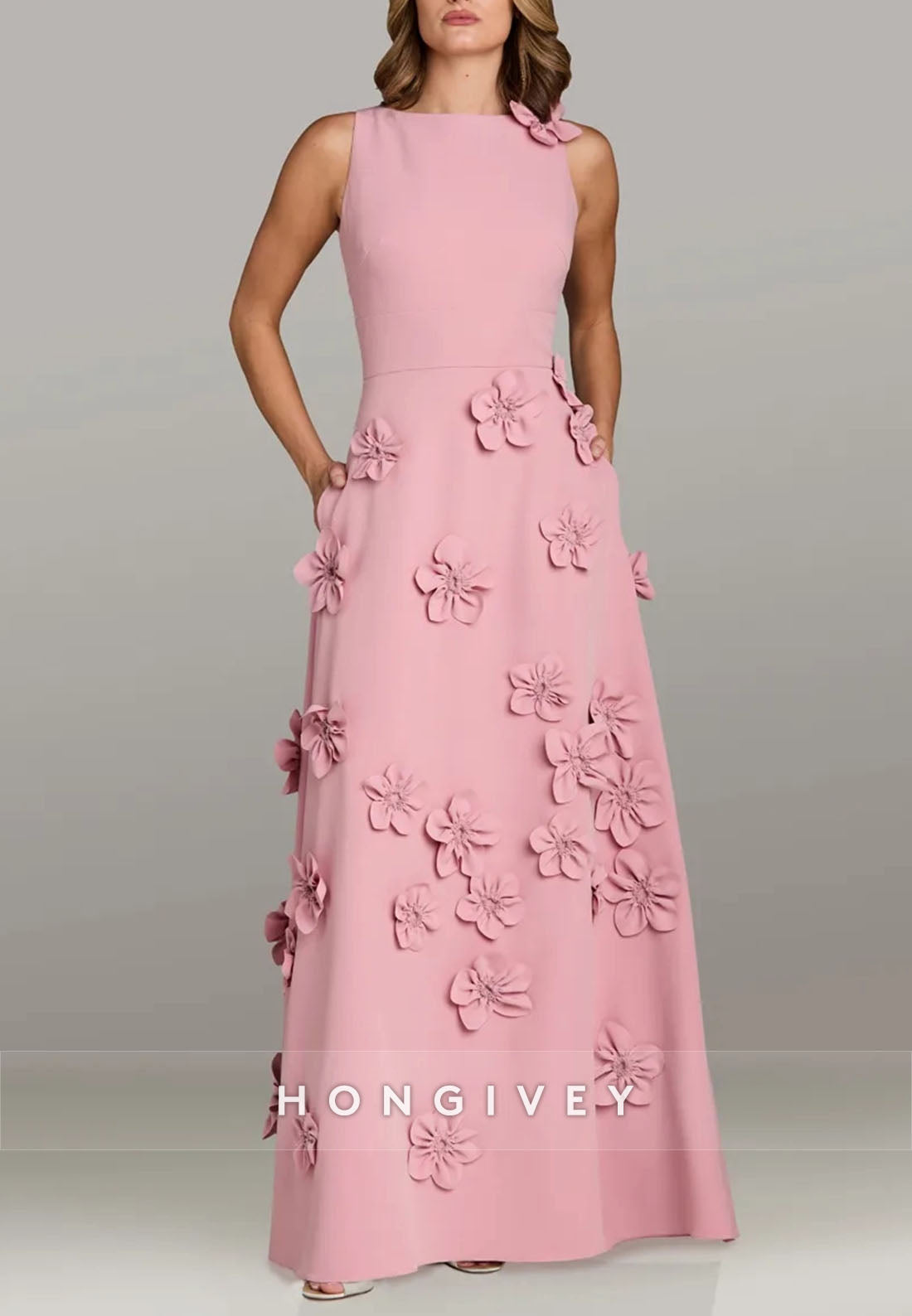 Halter Floor-Length A-line Evening Gown Pleated Flowers Mother of the Bride Dress