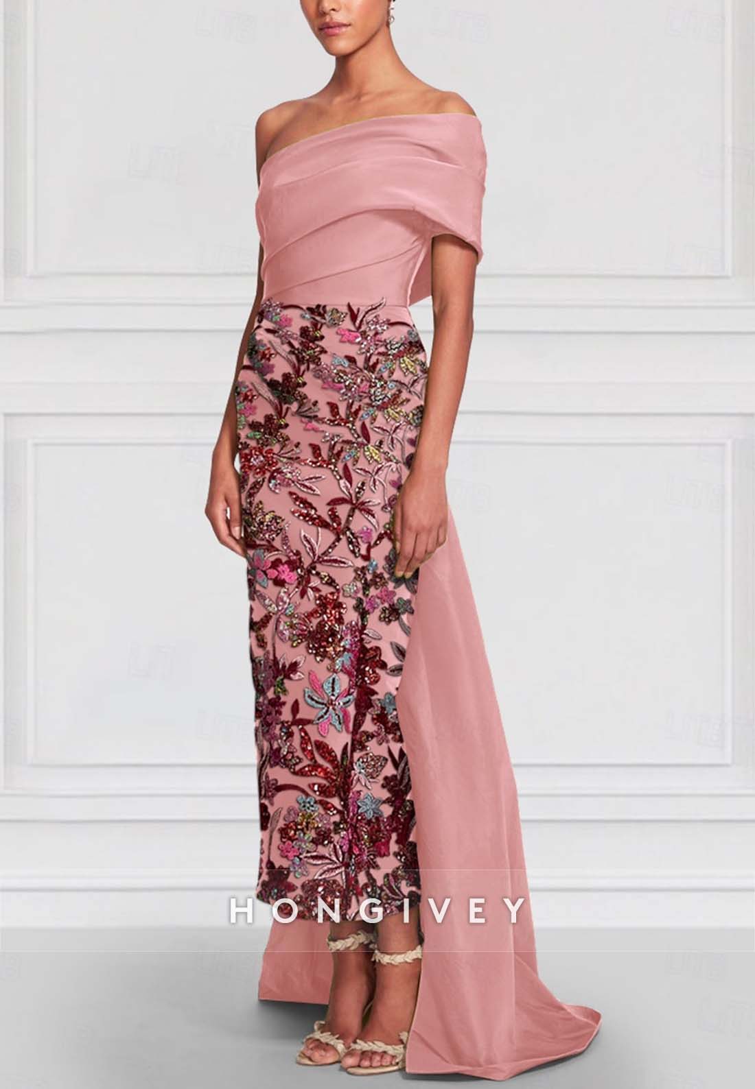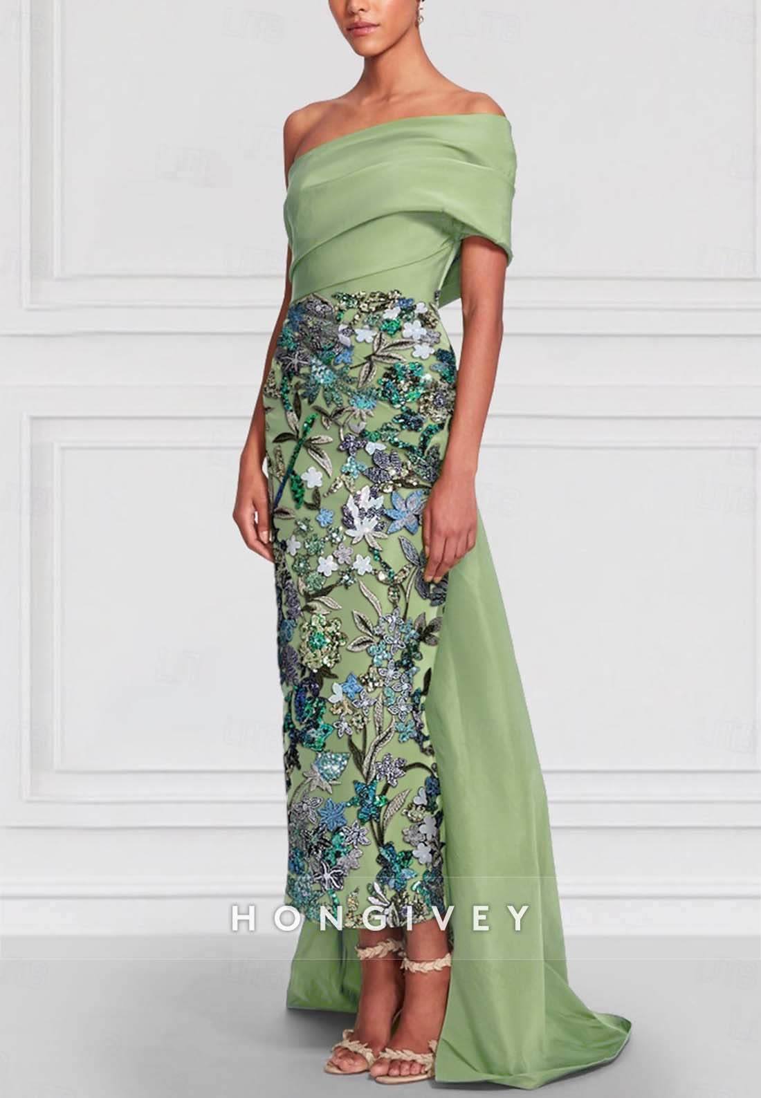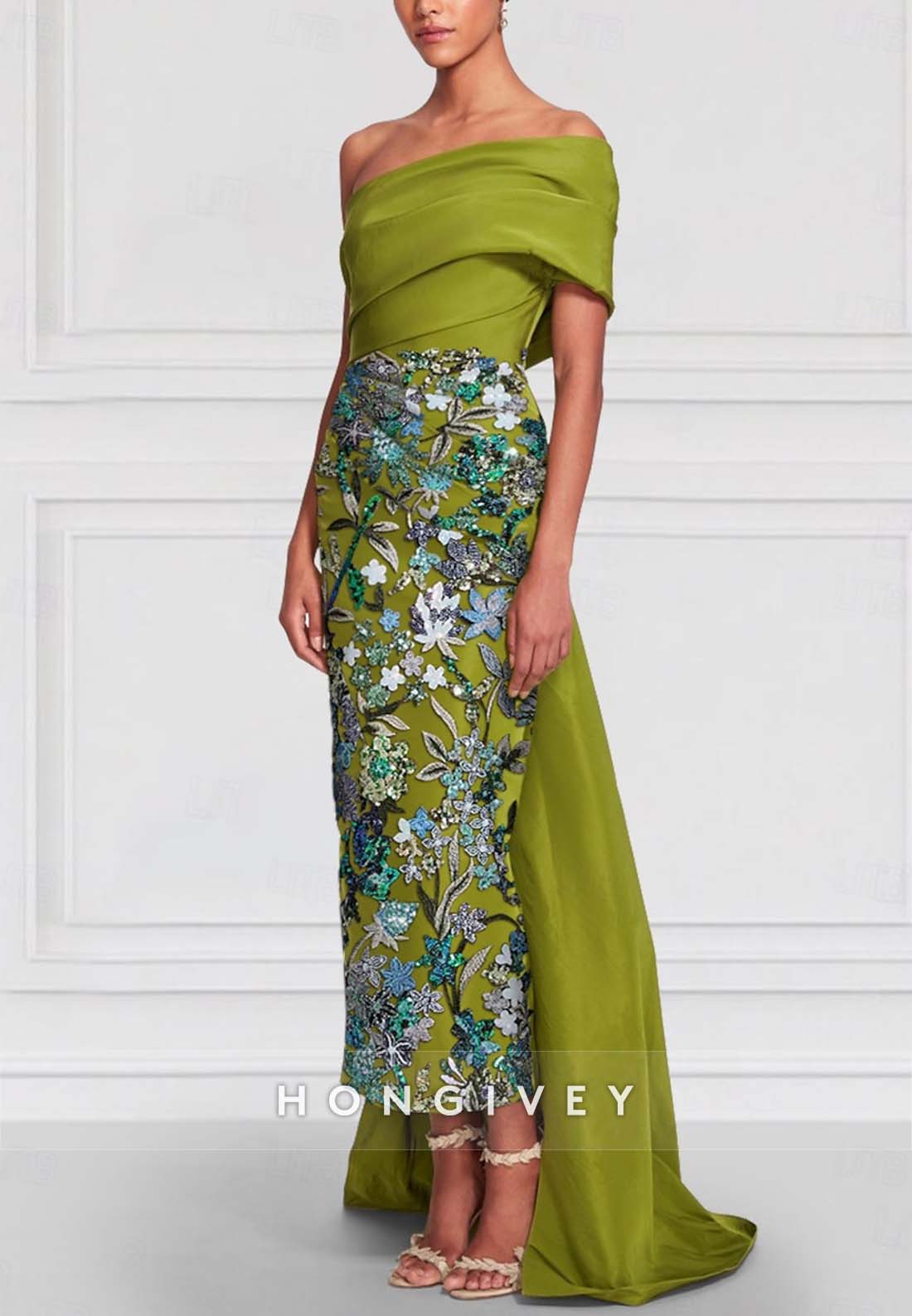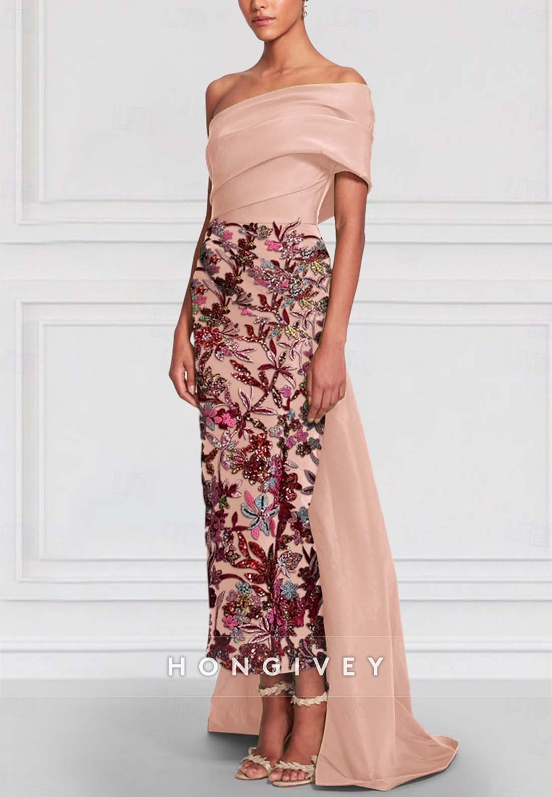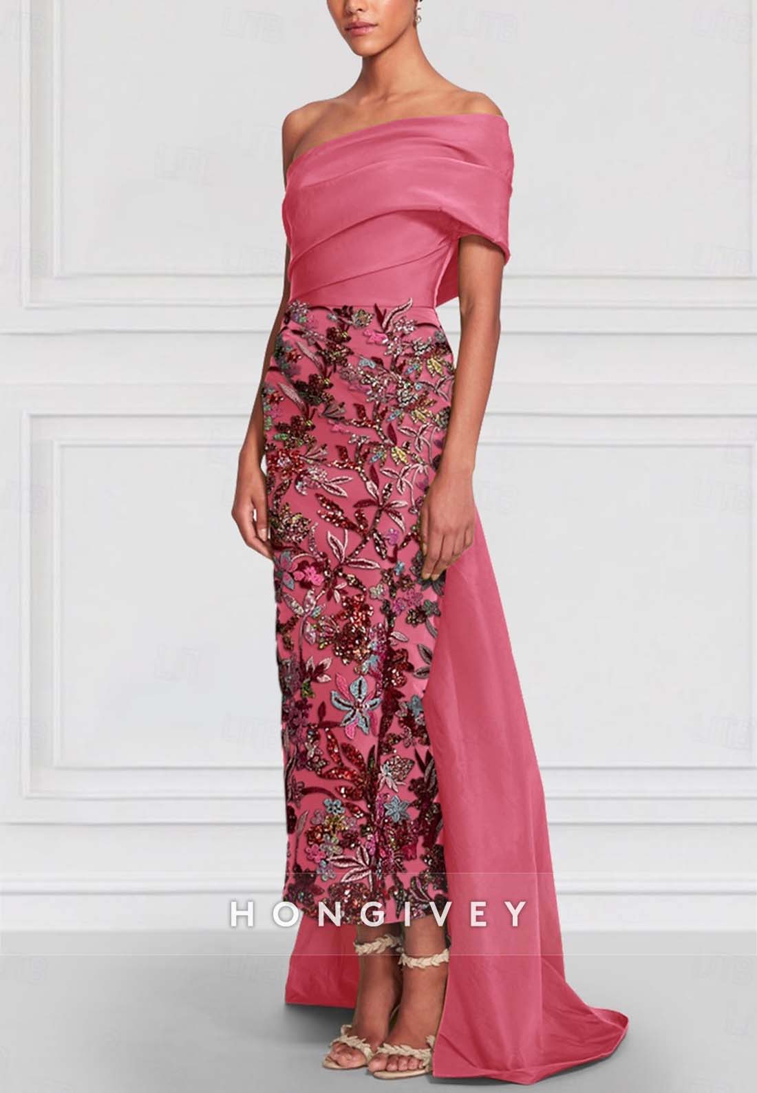 Shawl One Shoulder Asymmetrical Sheath Evening Gown Bead embroidery Mother of the Bride