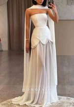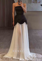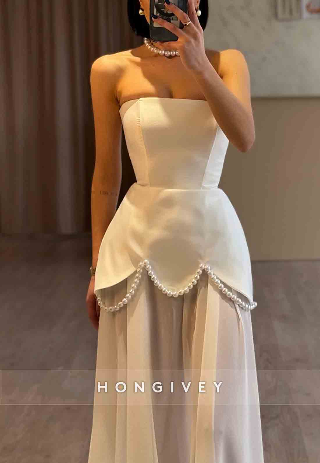 Strapless A-line Floor-Length Pearls Low Back Pleated Evening Gown