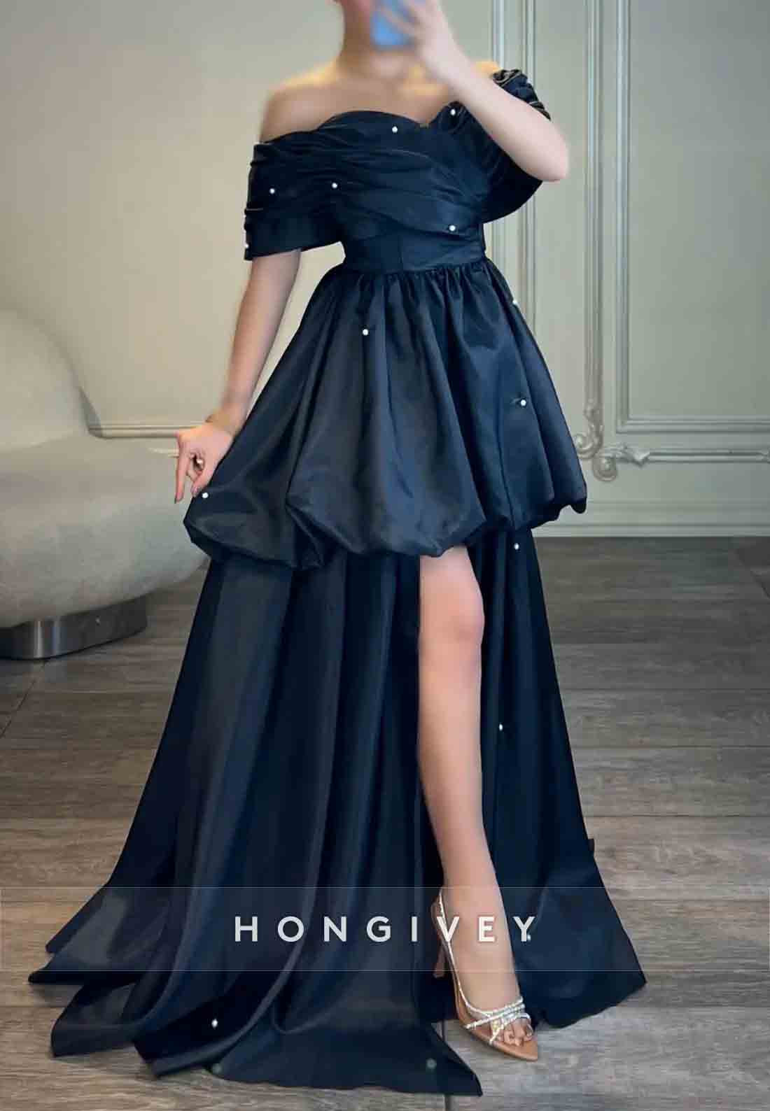 Indulge in luxury and elegance with our Tie Back A-line Sweep Train Off the Shoulder Pleated Evening Gown. Featuring a timeless A-line silhouette and an alluring off-the-shoulder neckline, this gown is expertly pleated to create a stunning and flattering fit. The tie back detail adds a touch of sophistication, making this gown the perfect choice for any formal event. Elevate your style and leave a lasting impression with this exquisite evening gown.