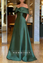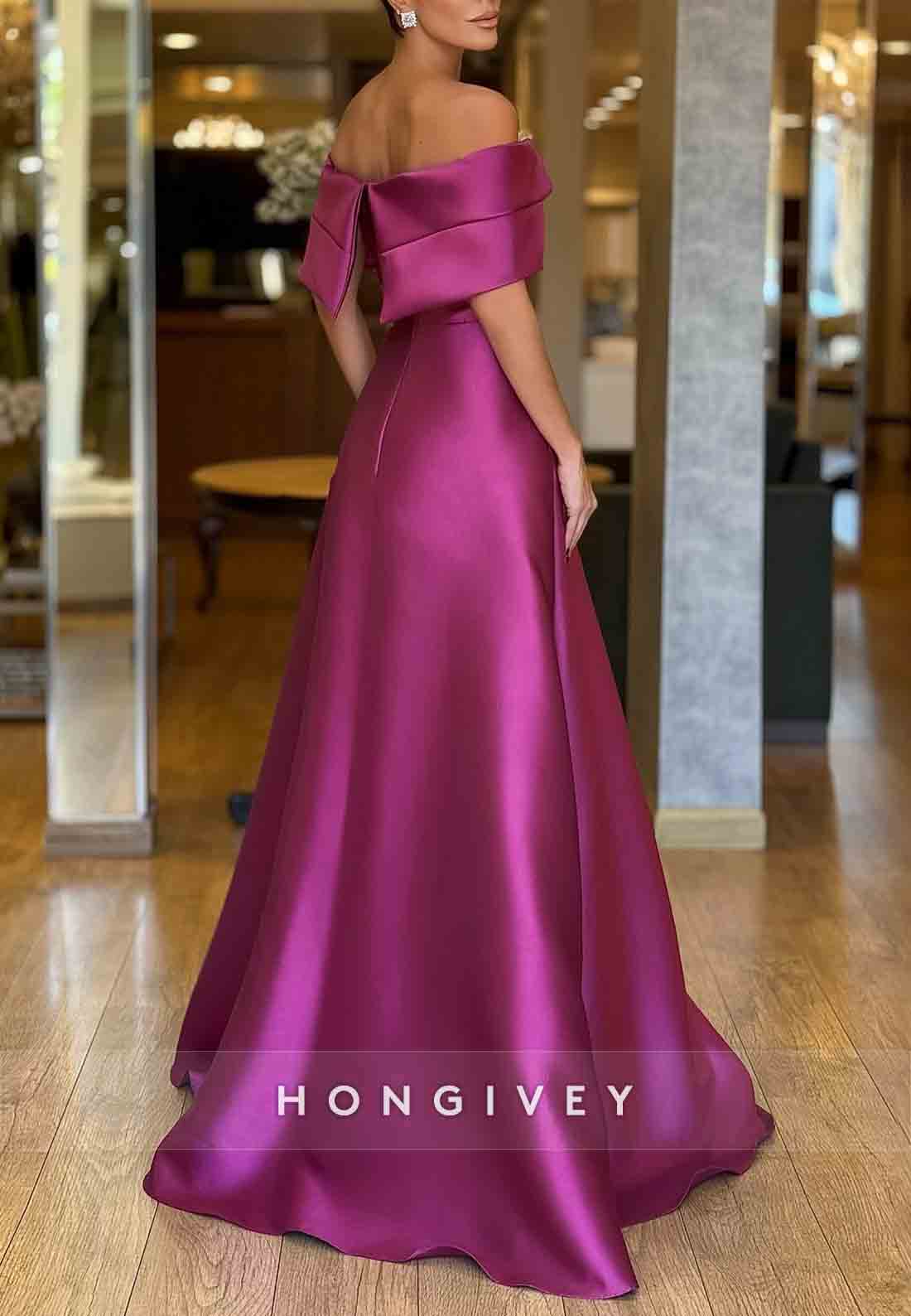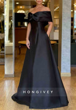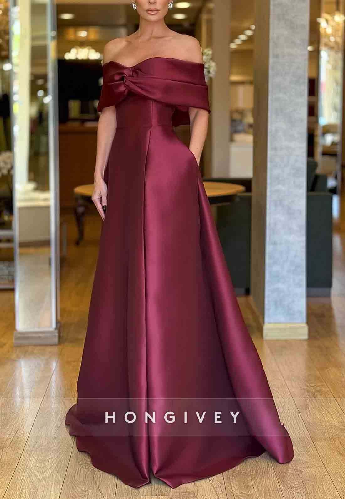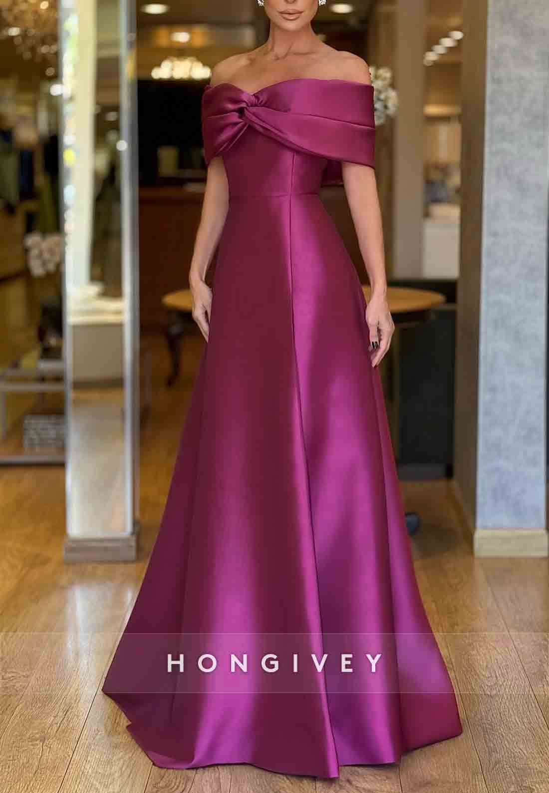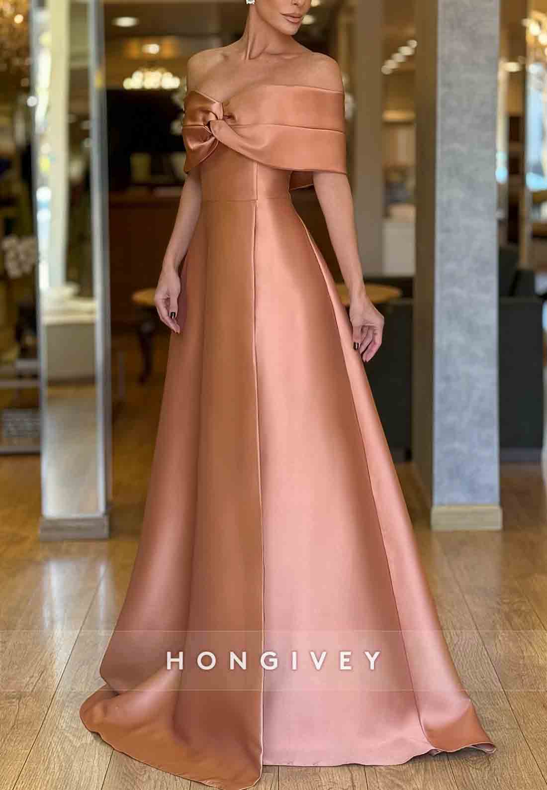 Off the Shoulder Mother of the Bride Satin Bowknot Pleated A-line Evening Gown
