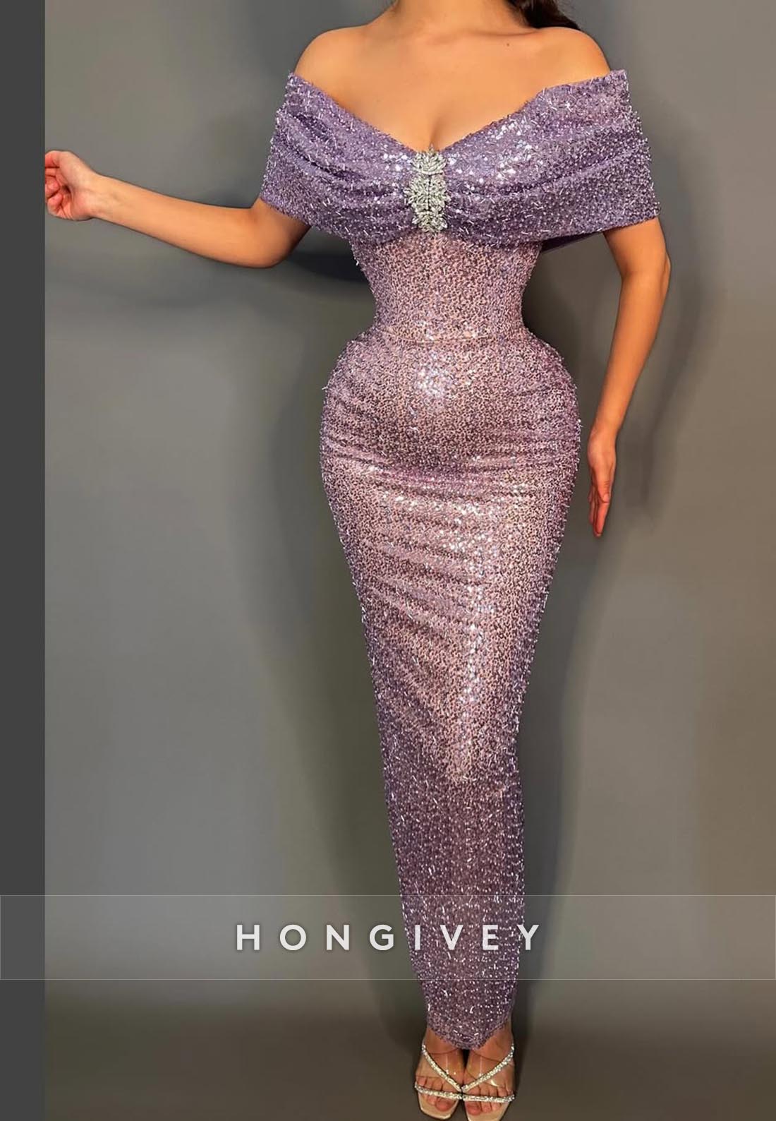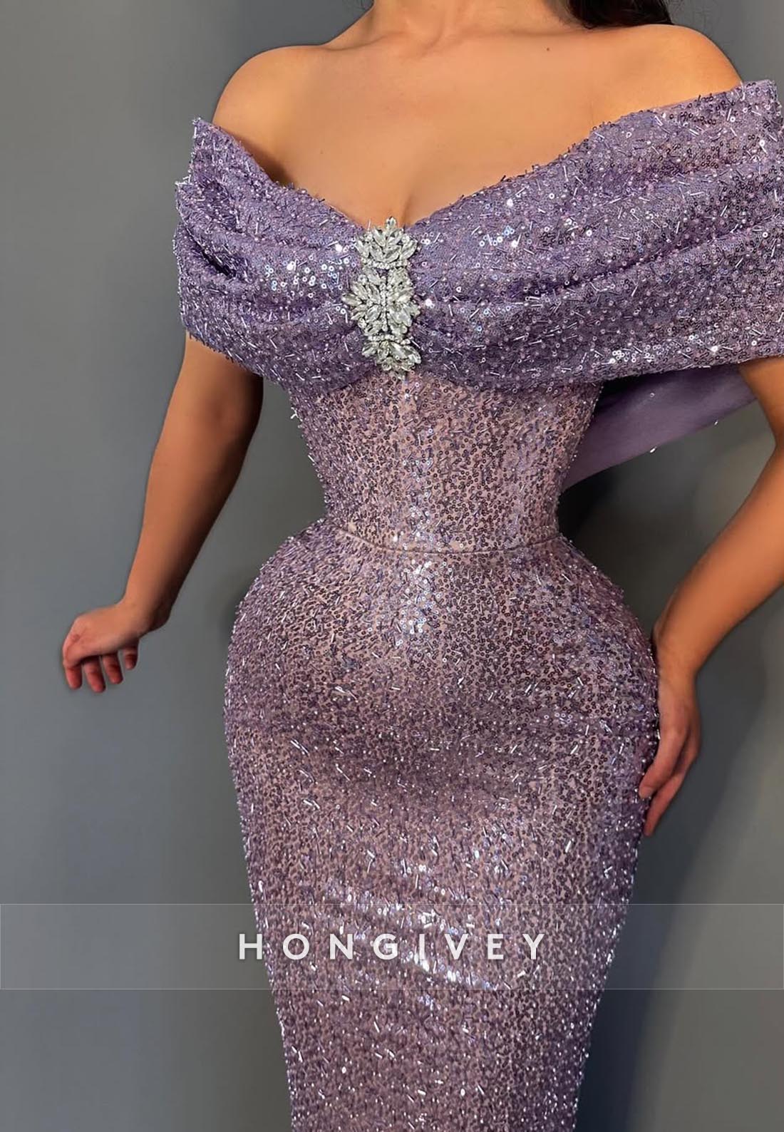 Fully Sequined Mermaid Party Long Wedding Guest Dresses with Rhinestone