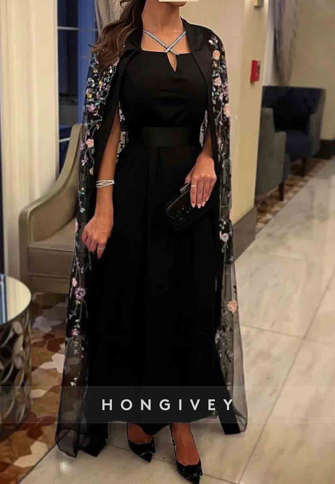 Ankle-Length Cloak A-line Beading Crisscross Neck Evening Gown