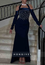 This captivating trumpet evening gown artfully balances contemporary design with timeless elegance. The refined halter neckline frames the décolletage with sophisticated allure, while meticulous pleating creates visual texture and dimensional interest. The asymmetrical detailing offers an avant-garde sensibility, complemented by long sleeves that provide graceful coverage. The trumpet silhouette gradually flares below the knee, celebrating feminine contours while ensuring a dramatic, sweeping presence at prestigious events and formal gatherings.