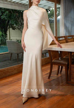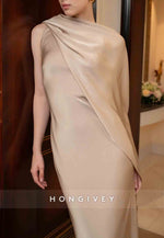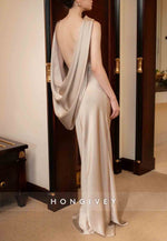 Trumpet Floor-Length Wedding Guest Dresses Sleeveless Cowl Back Evening Gown