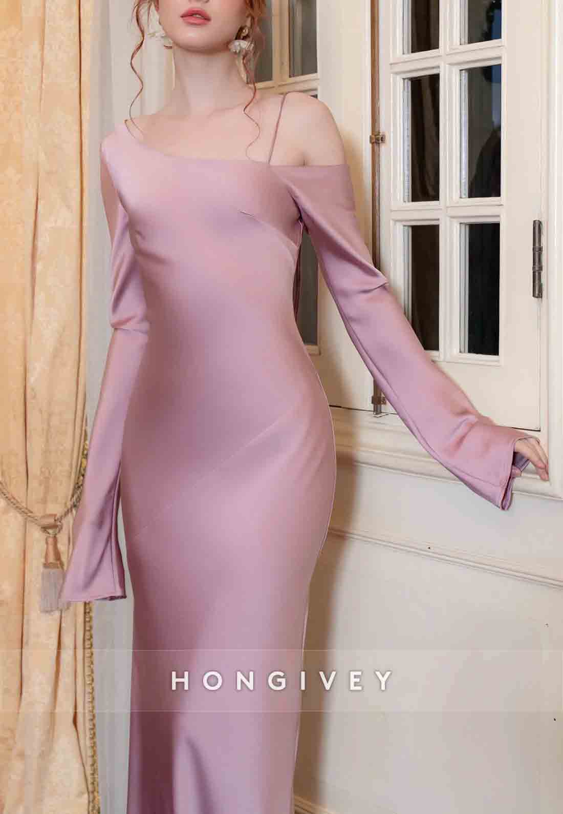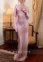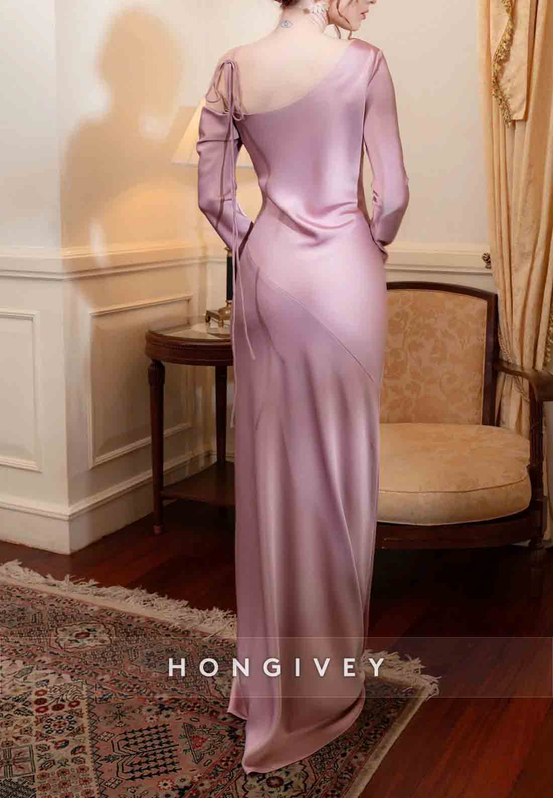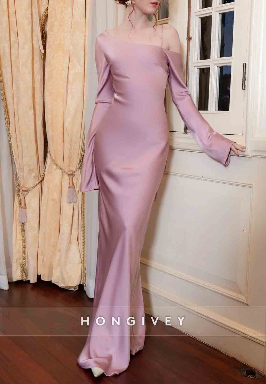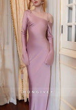 Long Sleeves Sheath One Shoulder Floor-Length Elastic Satin Evening Gowns