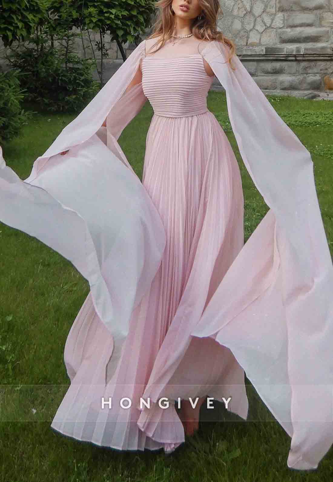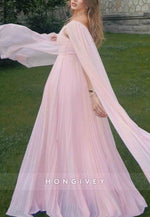 Ruffles Pleated Floor-Length Guest of Wedding A-Line Evening Gowns