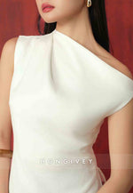 One Shoulder Simple Floor-Length Sleeveless Lace Pleated Evening Gowns