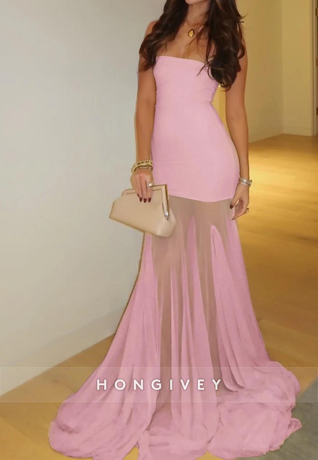 Floor-Length Illusion Strapless Mermaid Sexy Evening Prom Dresses