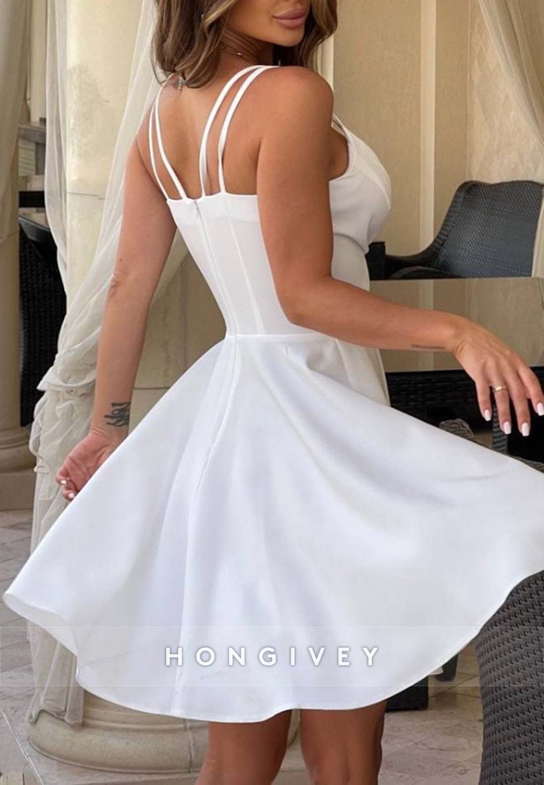 Sexy A-line V Neck Short Regular Straps Short Wedding Dresses