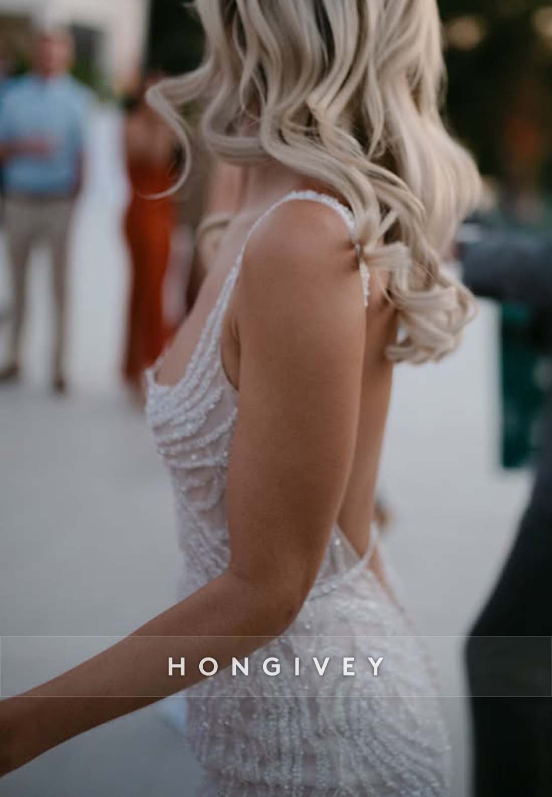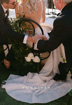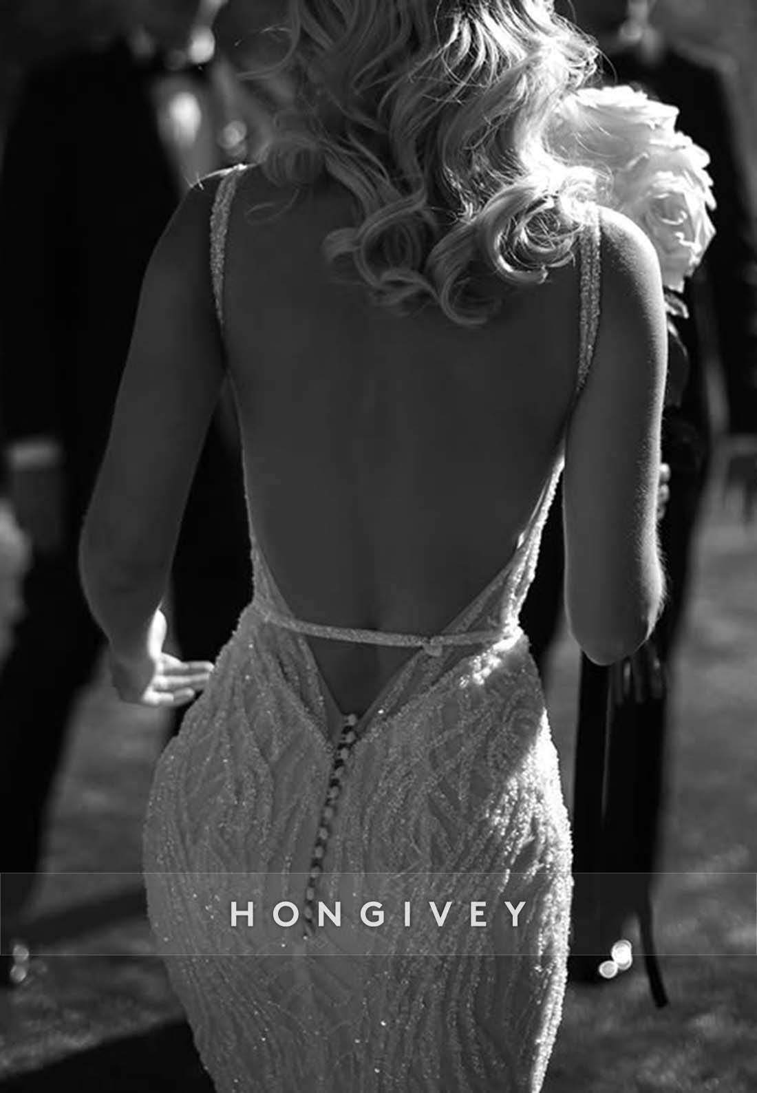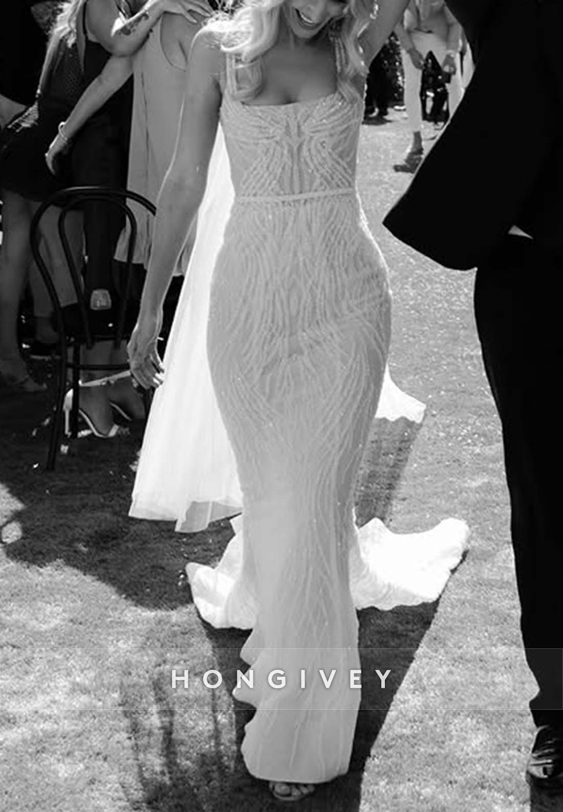 Elevate your wedding look with our Backless Regular Straps Sleeveless Sheath Square Beading Wedding Dresses. Featuring elegant and intricate beading on a modern square neckline, this dress will make you feel sophisticated and exclusive on your special day. The backless design and regular straps add the perfect touch of allure.