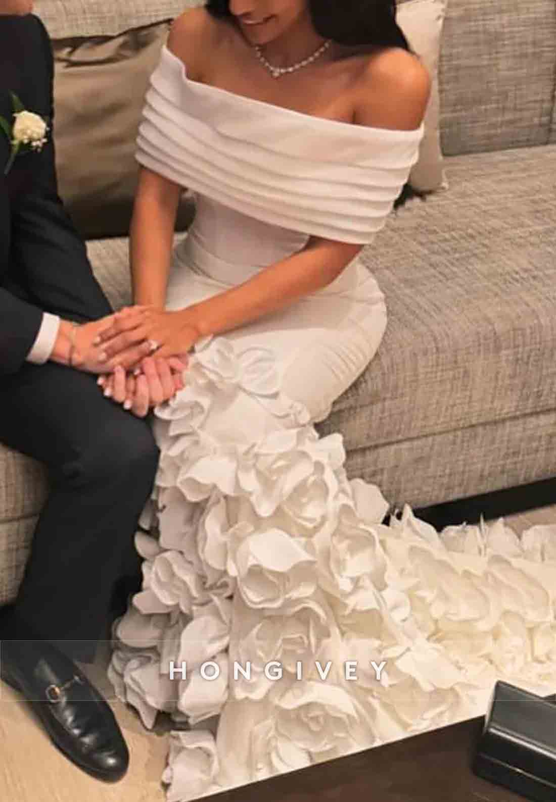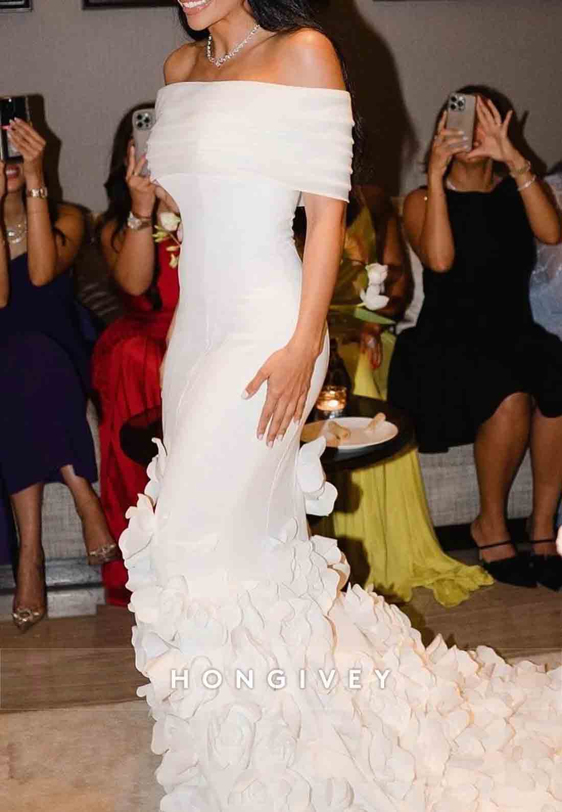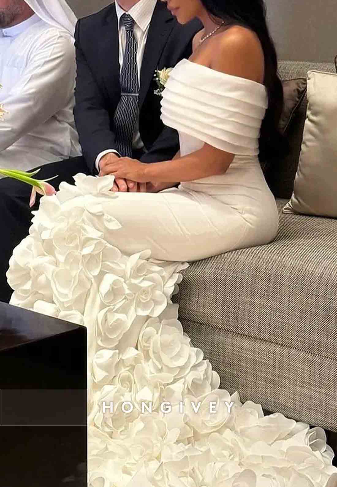 Flowers Off the Shoulder Shawl Mermaid Sweep Train Wedding Dresses