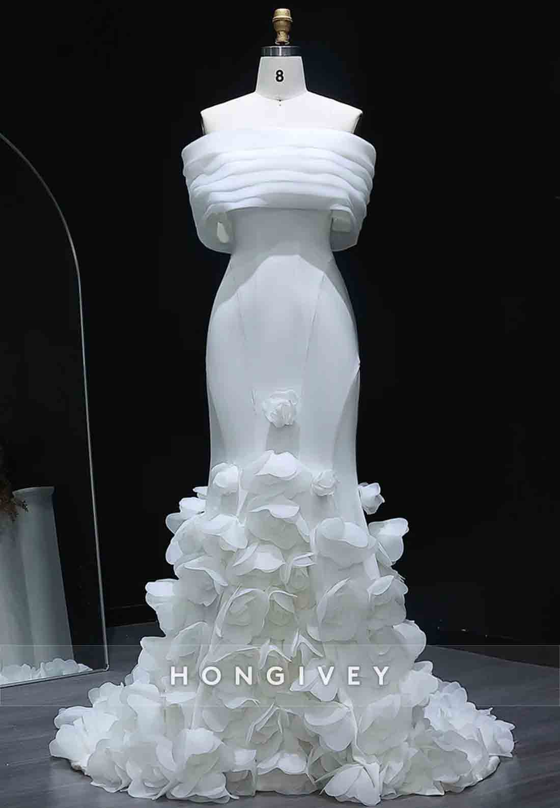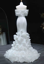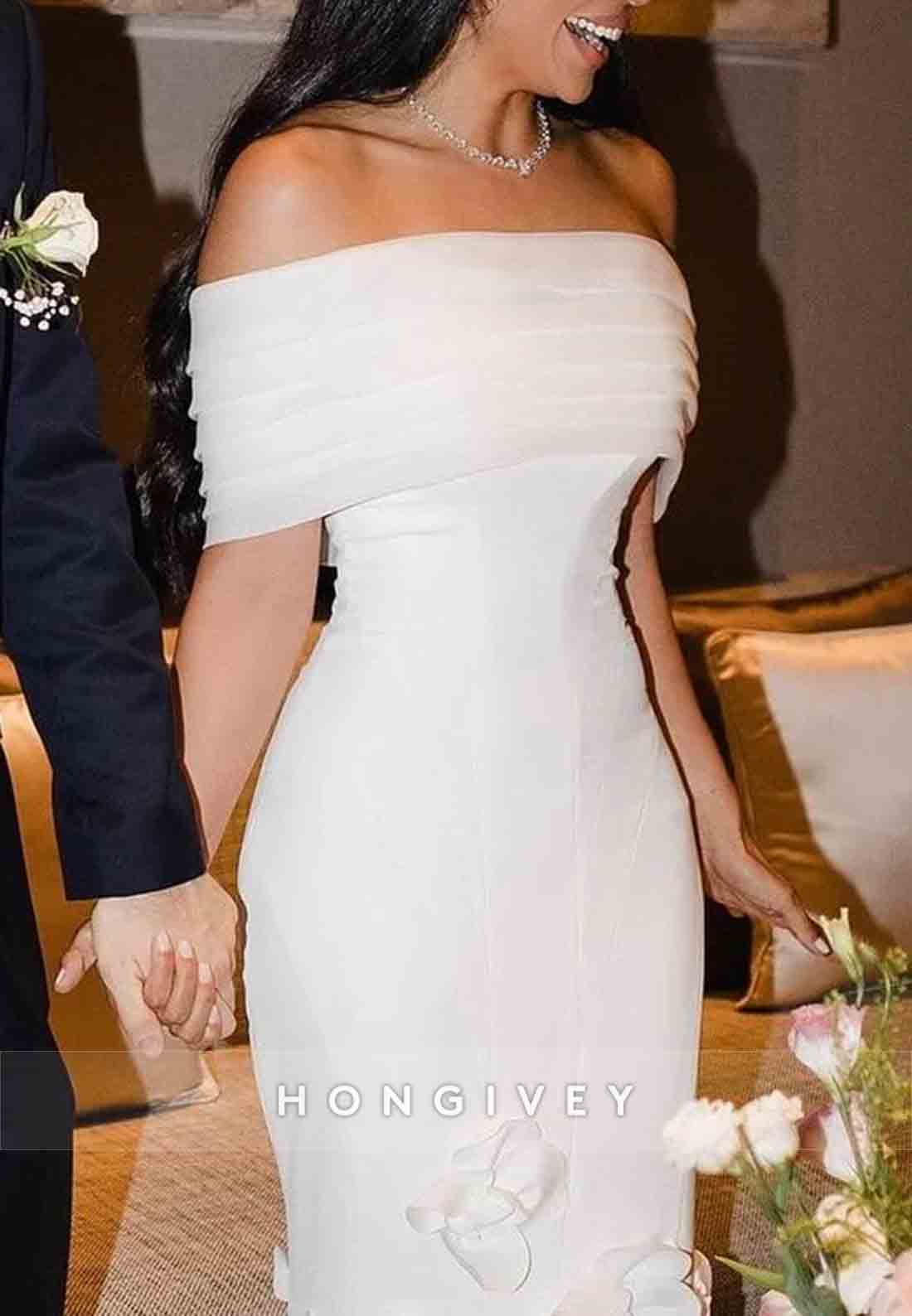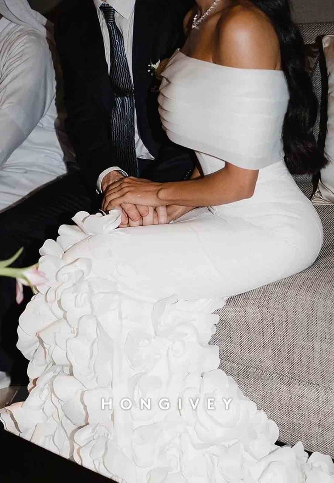 Flowers Off the Shoulder Shawl Mermaid Sweep Train Wedding Dresses