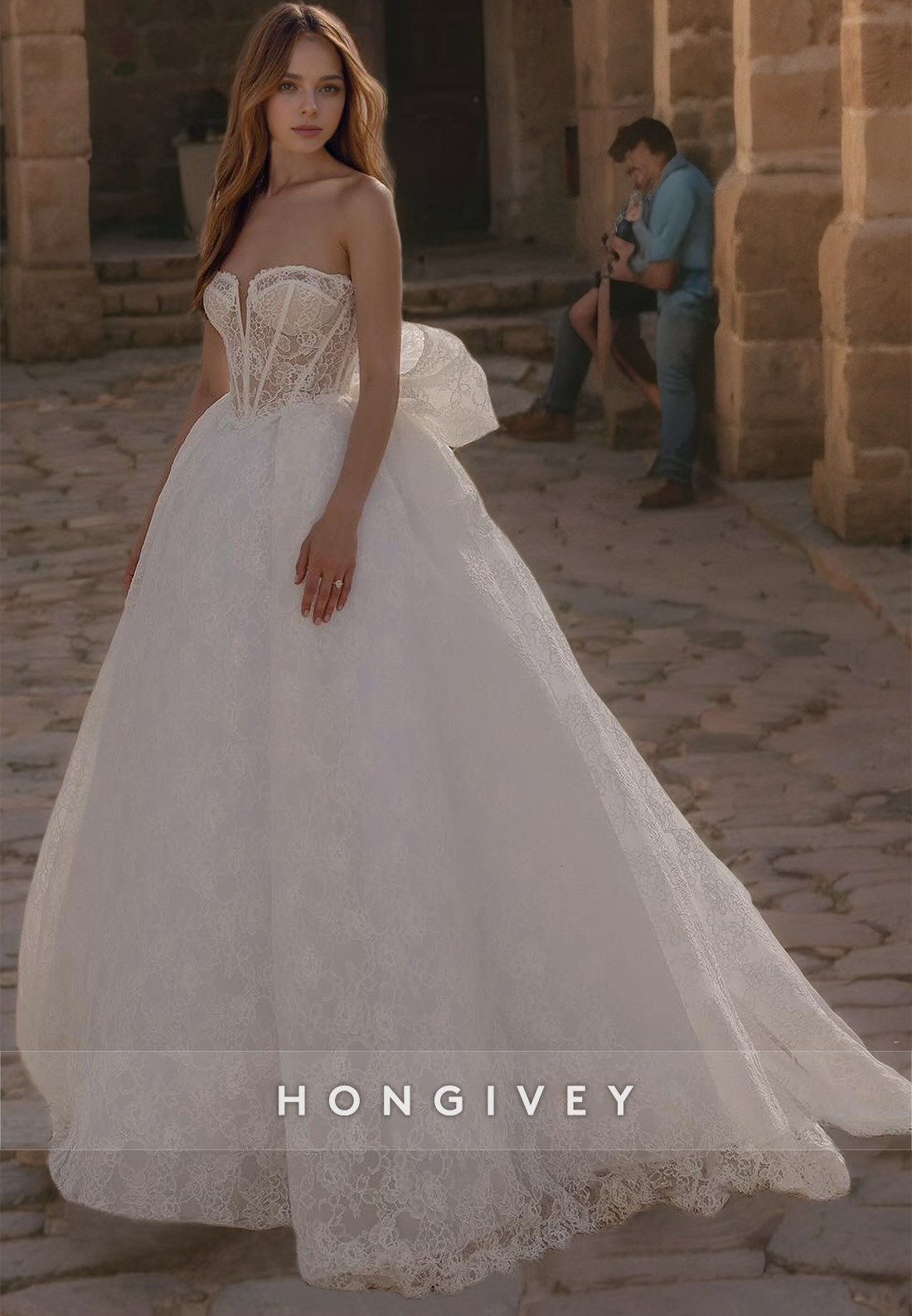 Expertly crafted with a sweetheart neckline, strapless design, and sheer appliques, the H1715 wedding dress is the epitome of elegance and sophistication. This A-line dress accentuates your natural curves and adds a touch of romance to your special day. Feel confident and stunning as you walk down the aisle.