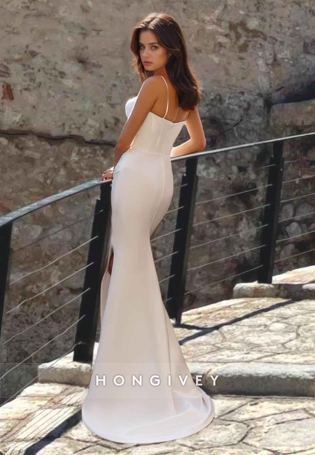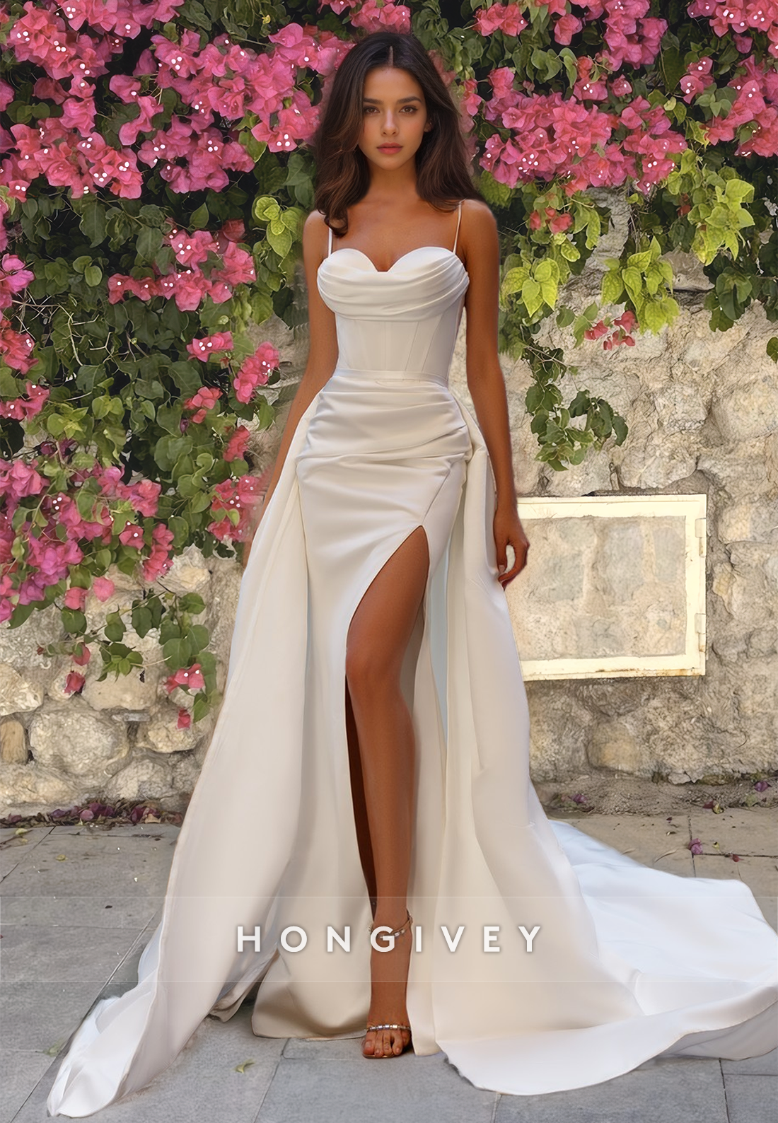 Sexy Ruched Satin Mermaid with Train Wedding Dress Classic Bride Gown HONGIVEY